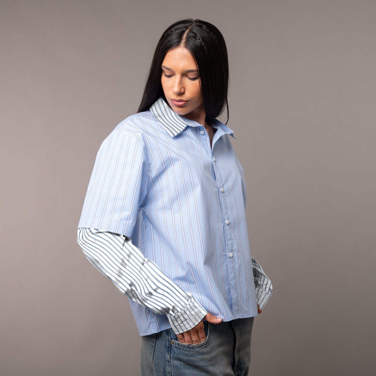 Proveedor:RUSTYCamisa Ml Rusty Mykonos Stripe Oversize Shirt Ld Glacier Lake
