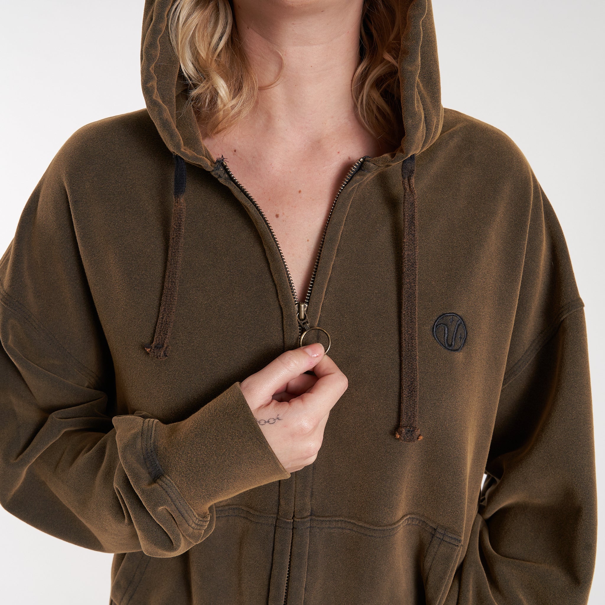 Campera Canguro Rusty One Logo Zip Hood* Brown Espresso