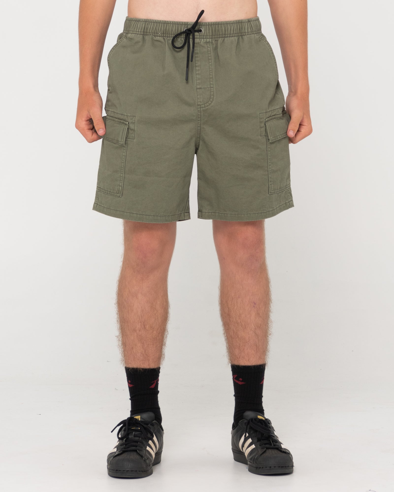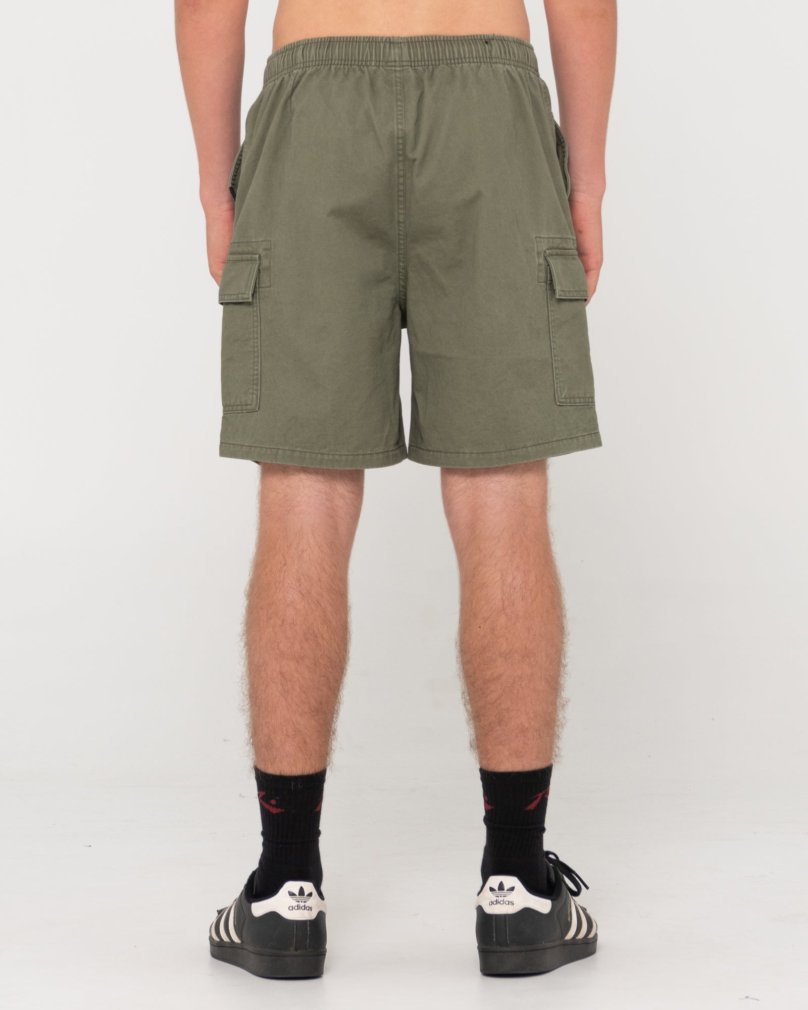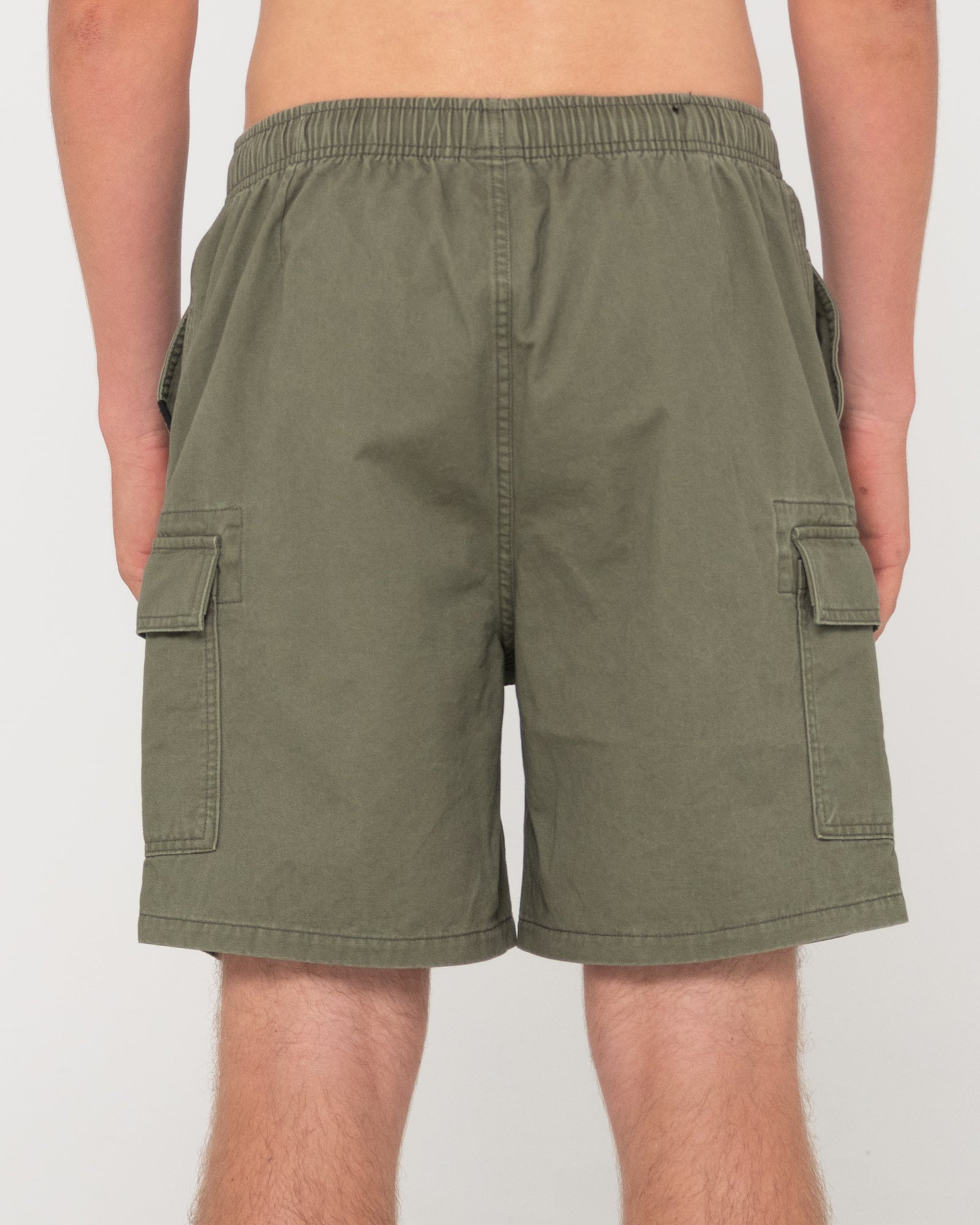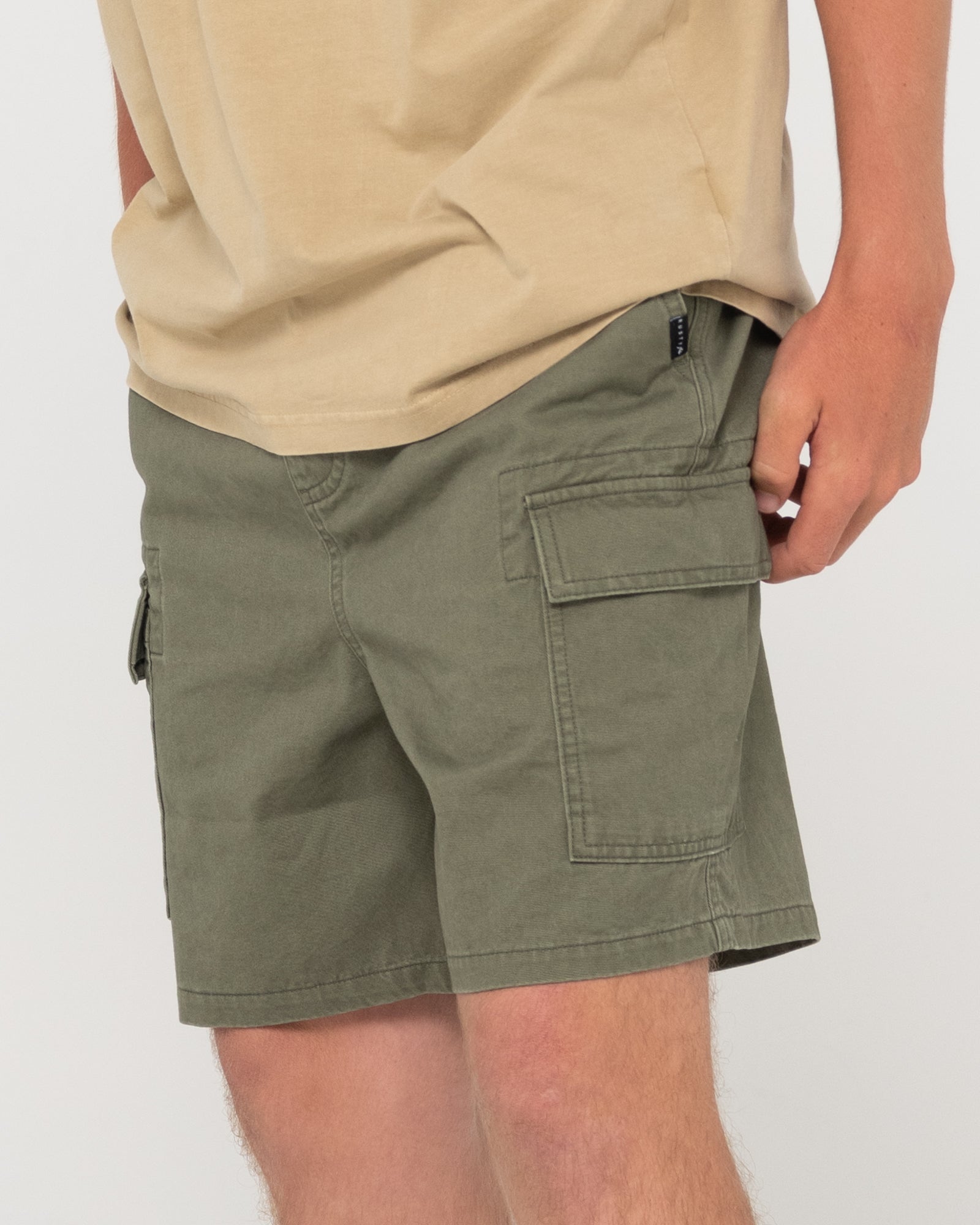 Bermuda cargo de nylon con spandex. Calce recto con cintura con elástico y cordón ajustables. Bolsillos en laterales y trasero. Confección al tono Tejido de uso hibrido urbano/playa, secado rápido.