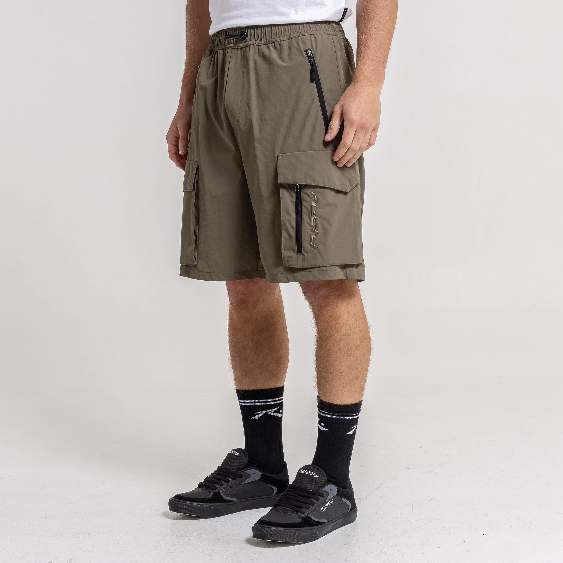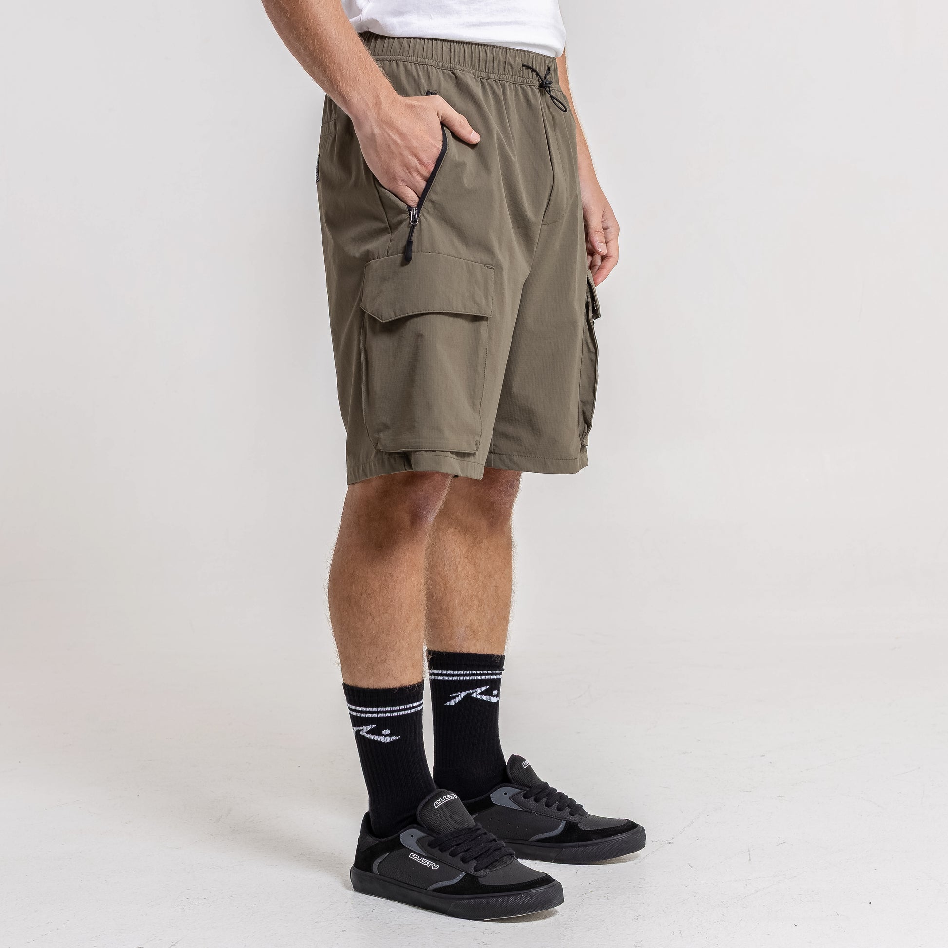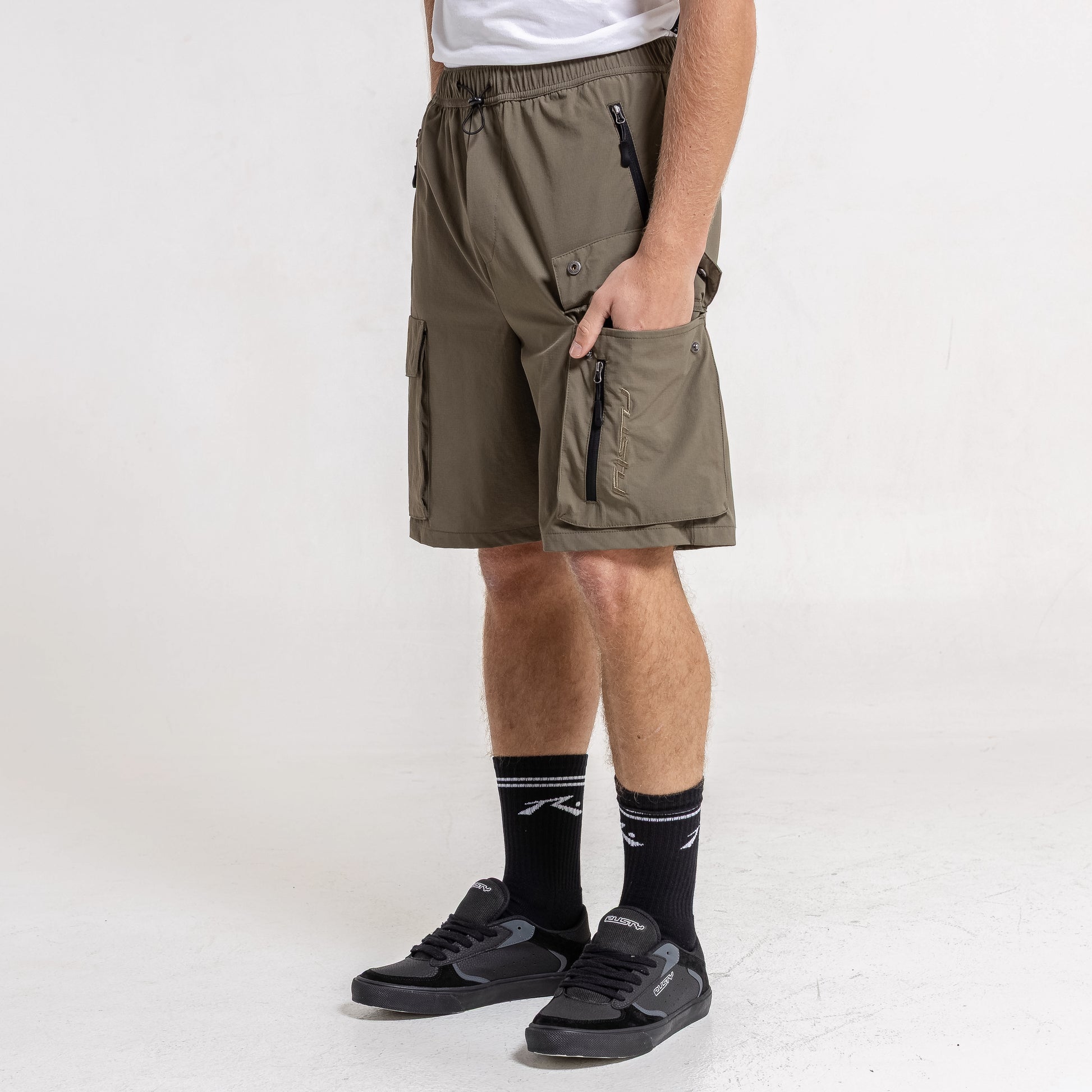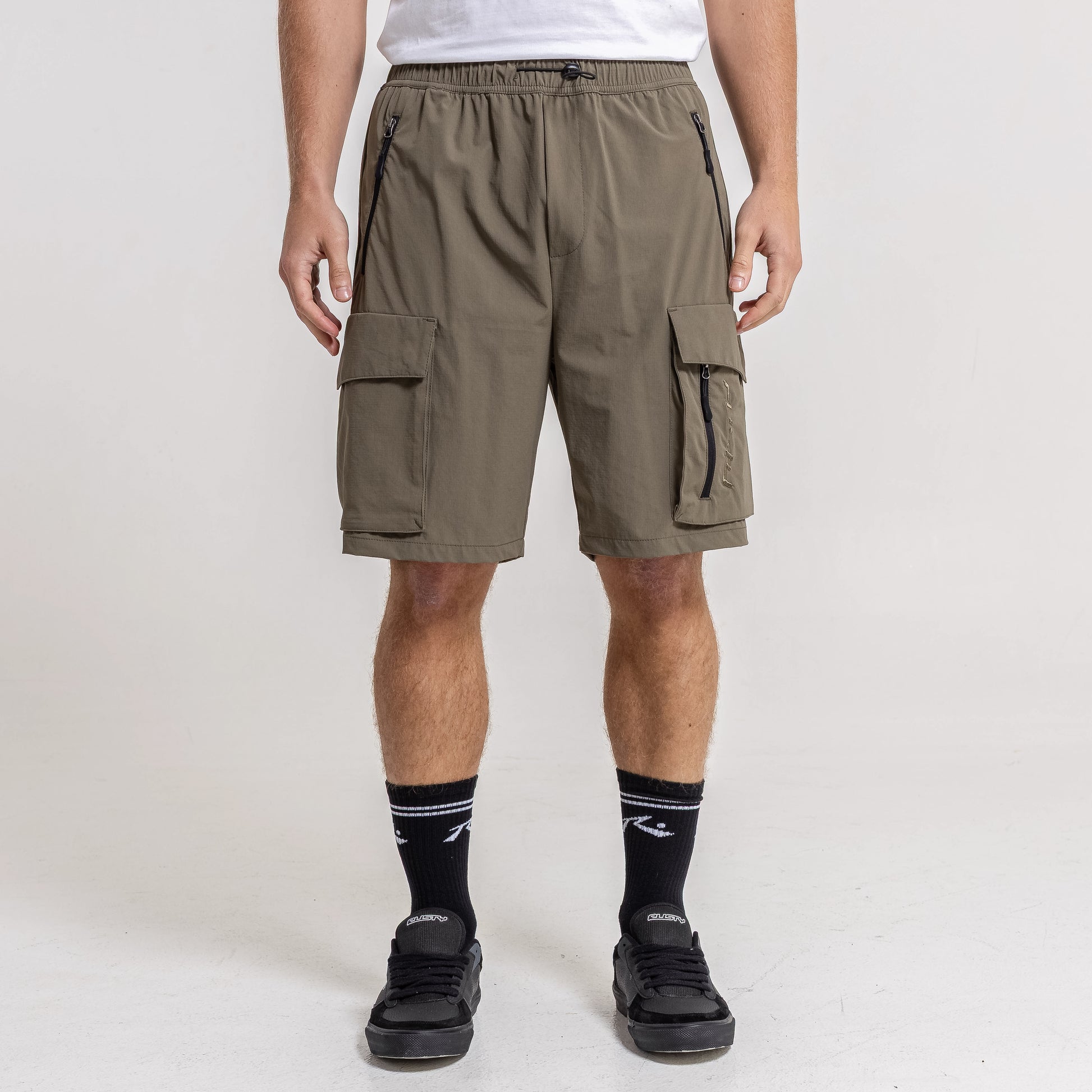 Detalles Cintura ajustable con tanca y cordón. Bolsillos cargo. Logo bordado al tono.