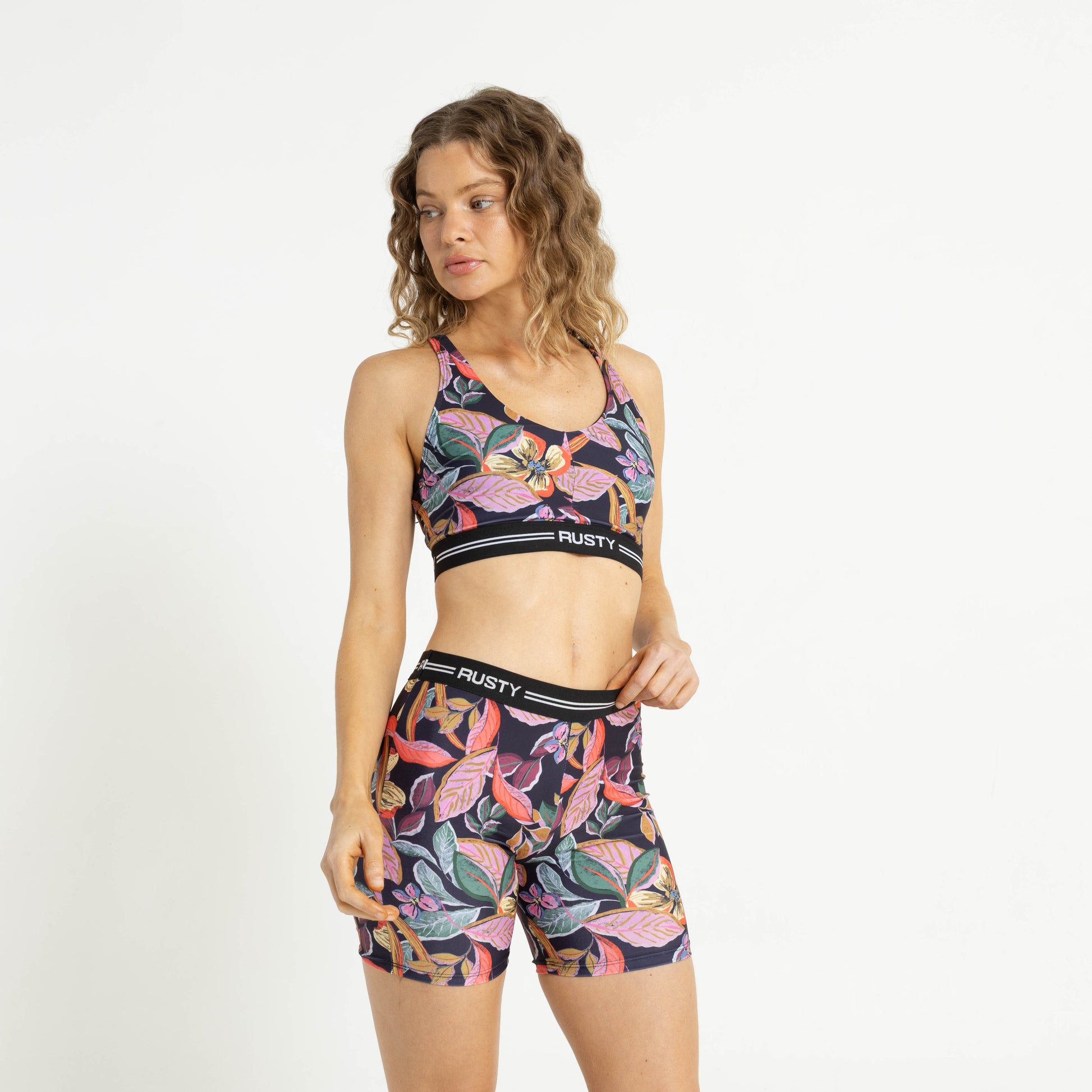 Detalles: Calza corta, estampada, con cintura de elástico tejido personalizado. Etiqueta de goma de marca en espalda.