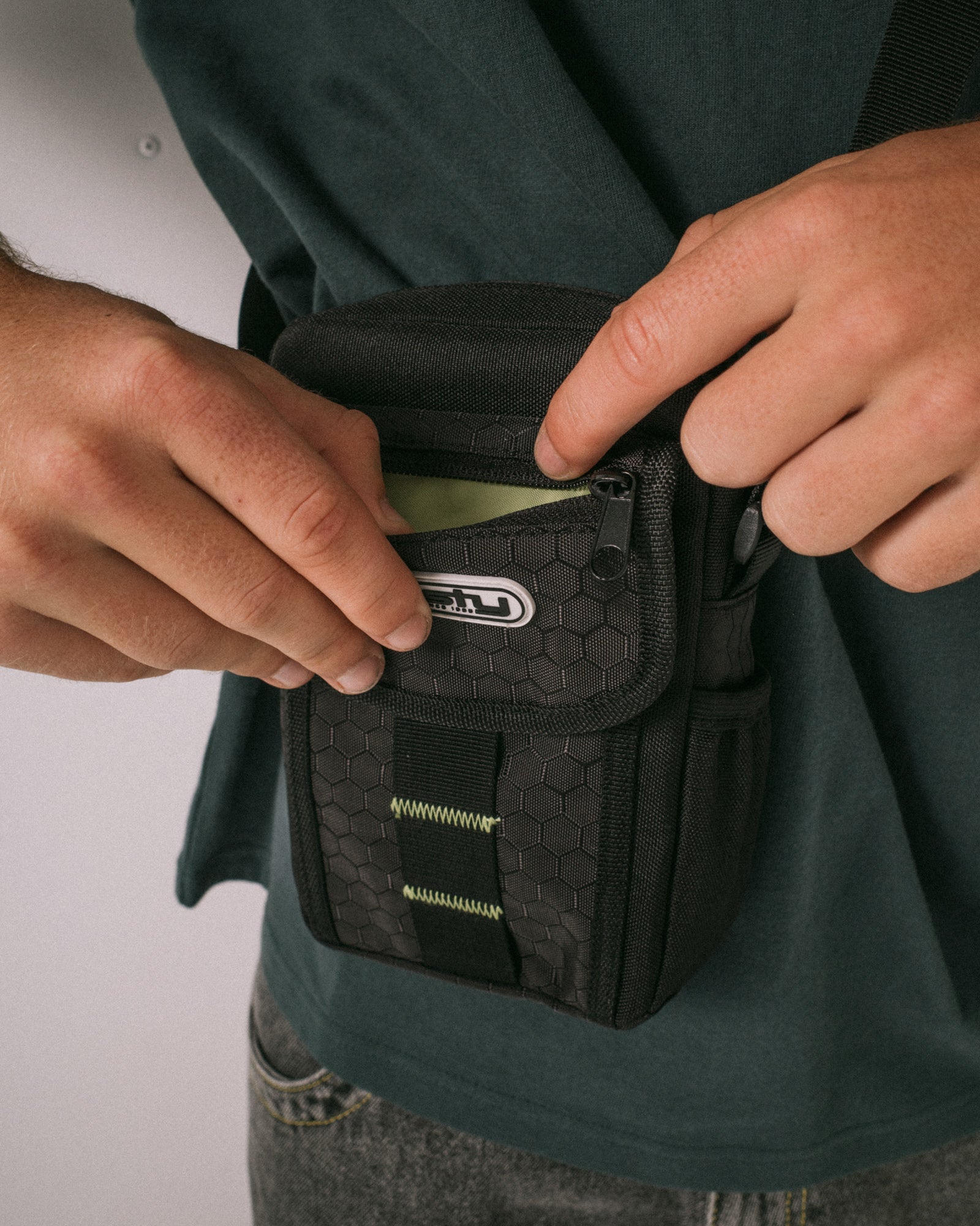 Un bolso cruzado que te resuelve el día sin estorbarte. El Voltage tiene capacidad justa (1L) para celular, llaves, billetera y lo que necesites a mano, con compartimentos organizados para que no revolvas todo cada vez. La correa ajustable te deja llevarlo como quieras, y el poliéster 600D banca el uso diario sin drama. Los detalles en sulphur sobre negro y las costuras a contratono le suman onda sin gritar. Va desde una salida rápida en bici hasta un día entero moviéndote por la ciudad.