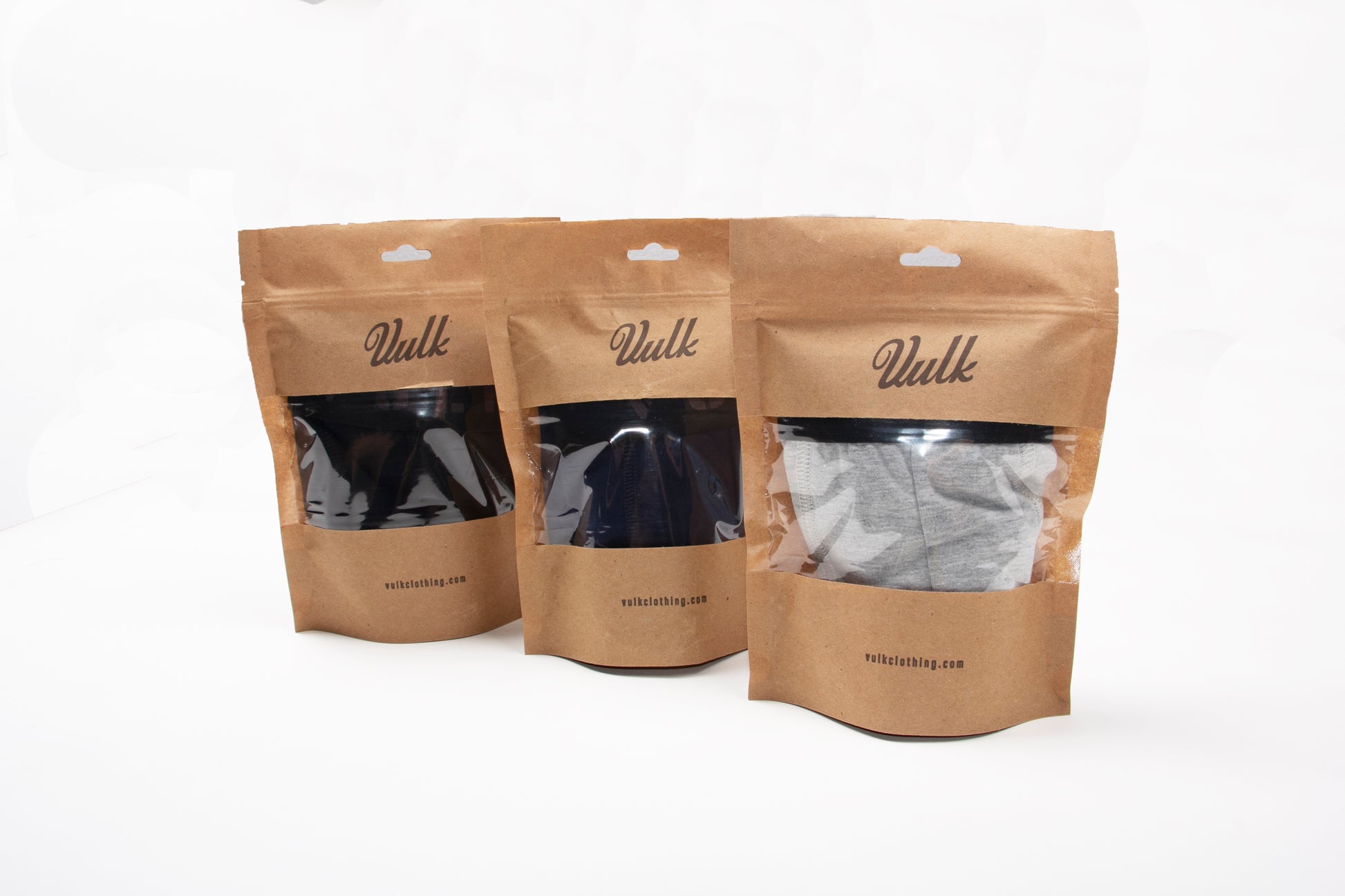 Boxer de jersey de algodón con lycra y elástico de marca personalizado. Se entrega en bolsa doypack de papel kraft con cierre ziploc.