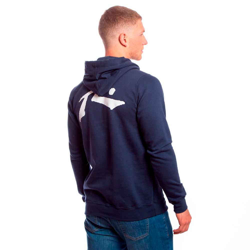 Buzo de frisa invisible de algodón poliéster con capucha forrada en jersey al tono y bolsillo canguro. Estampado de logo en el frente y central en la espalda. Regular fit.