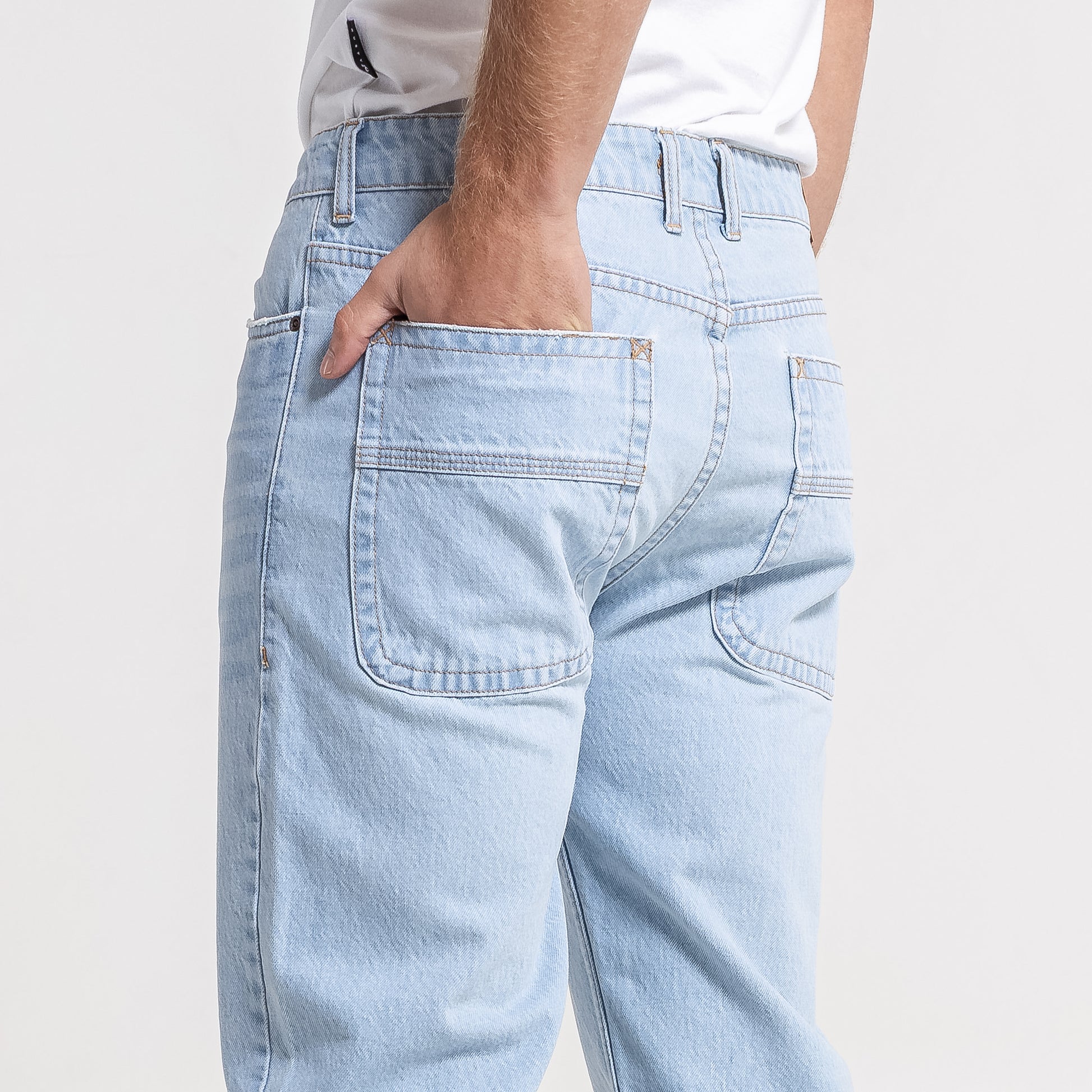 Detalles Clásico 5 bolsillos. Lavado intenso gastado claro. Badana de ecocuero y grifa en bolsillo trasero. Botón y remaches cobre italiano.