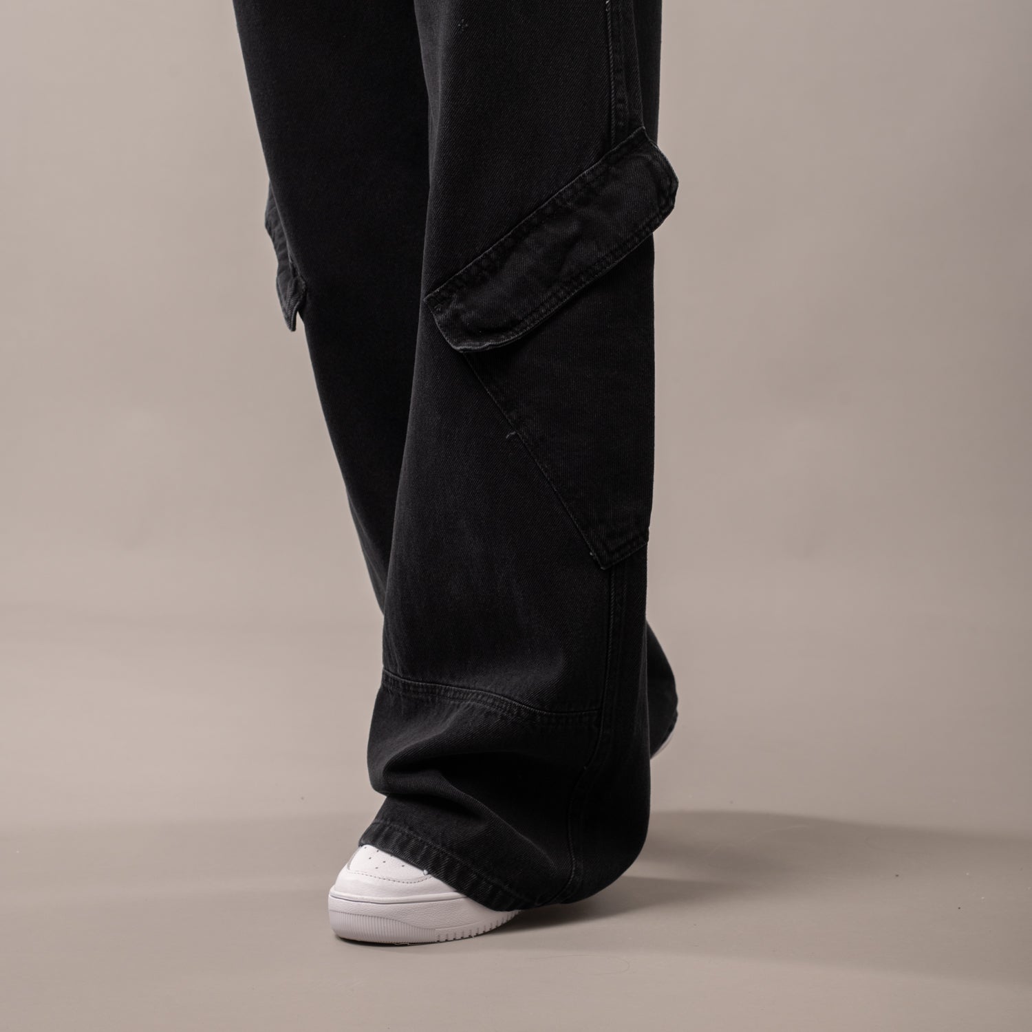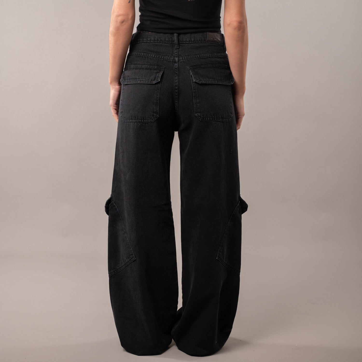 Jean Rusty Dark Wide Leg Cargo Washed Black
