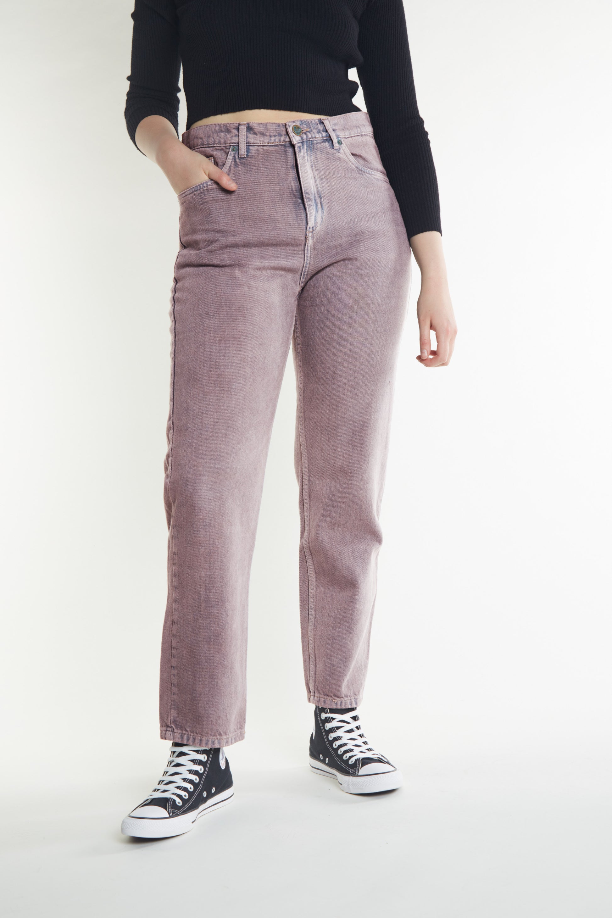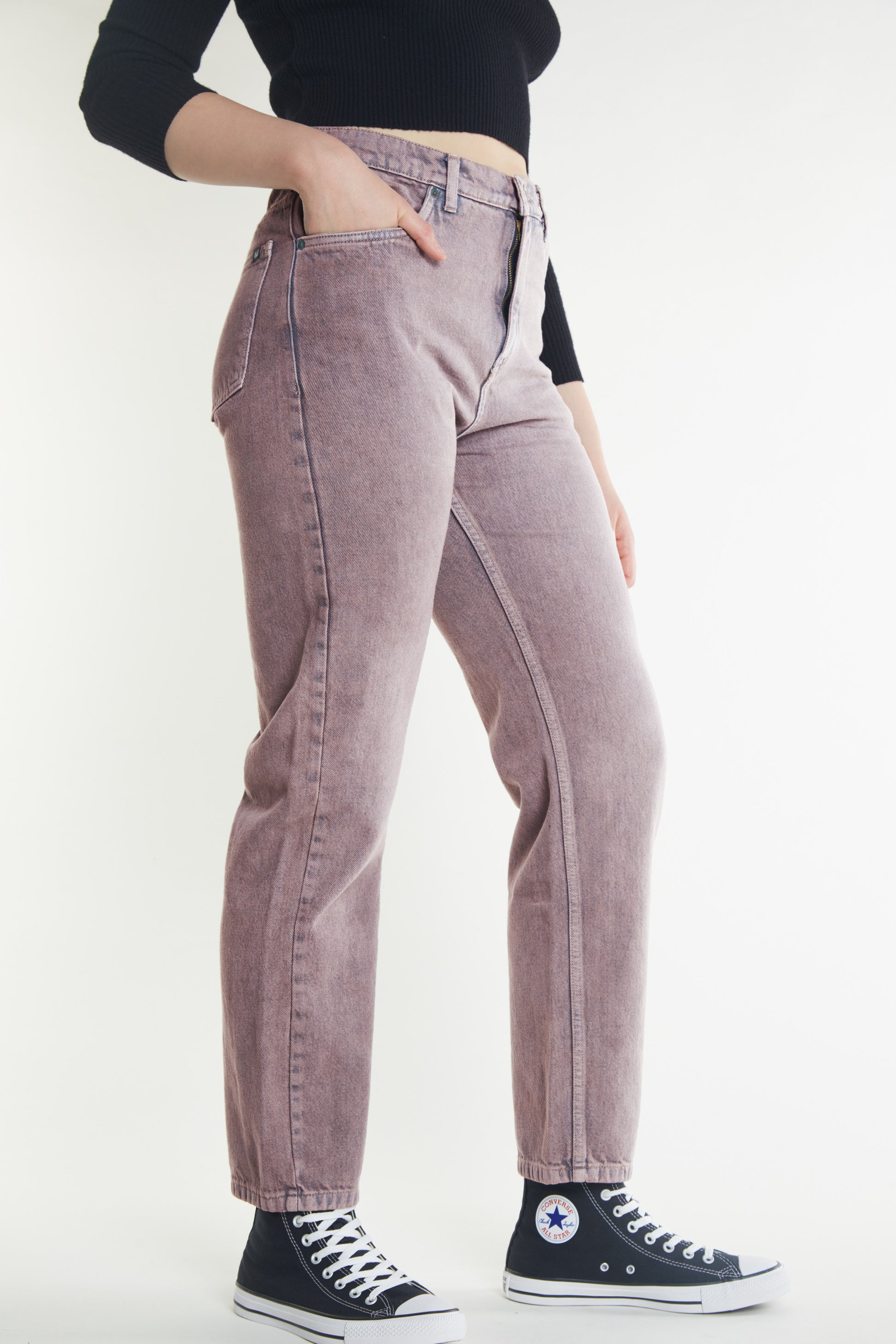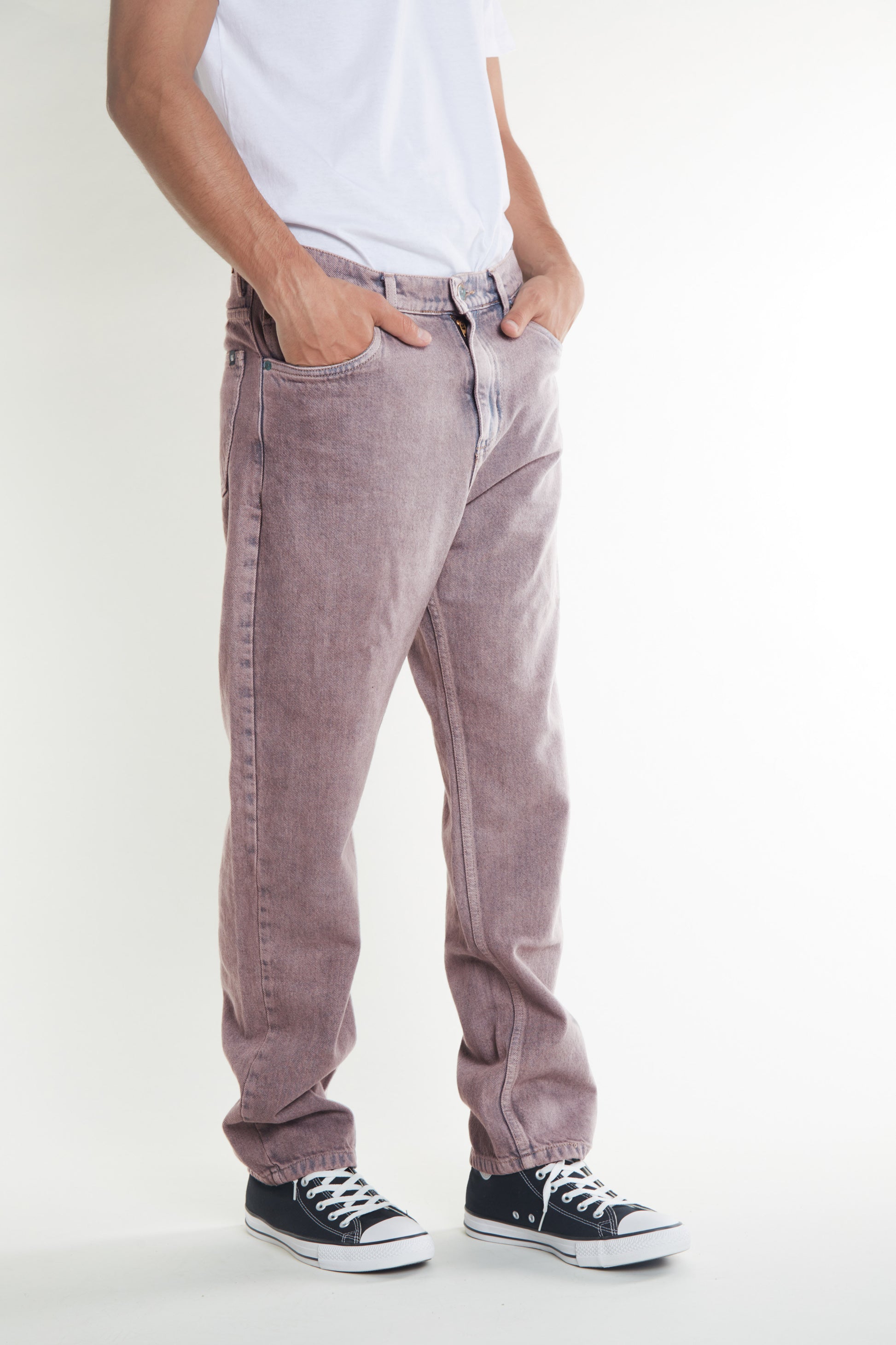 Jean 5 bolsillos, tiro medio alto, relax vintage fit: holgado desde la cadera hasta los tobillos de manera pareja. Tejido rígido 100% algodón. Badana de marca ecocuero camel en cintura y botones y remaches personalizados. Dobladillo regular apertura de ruedo de 20 cm. El tejido tiene un proceso de matizado color oxido grisáceo