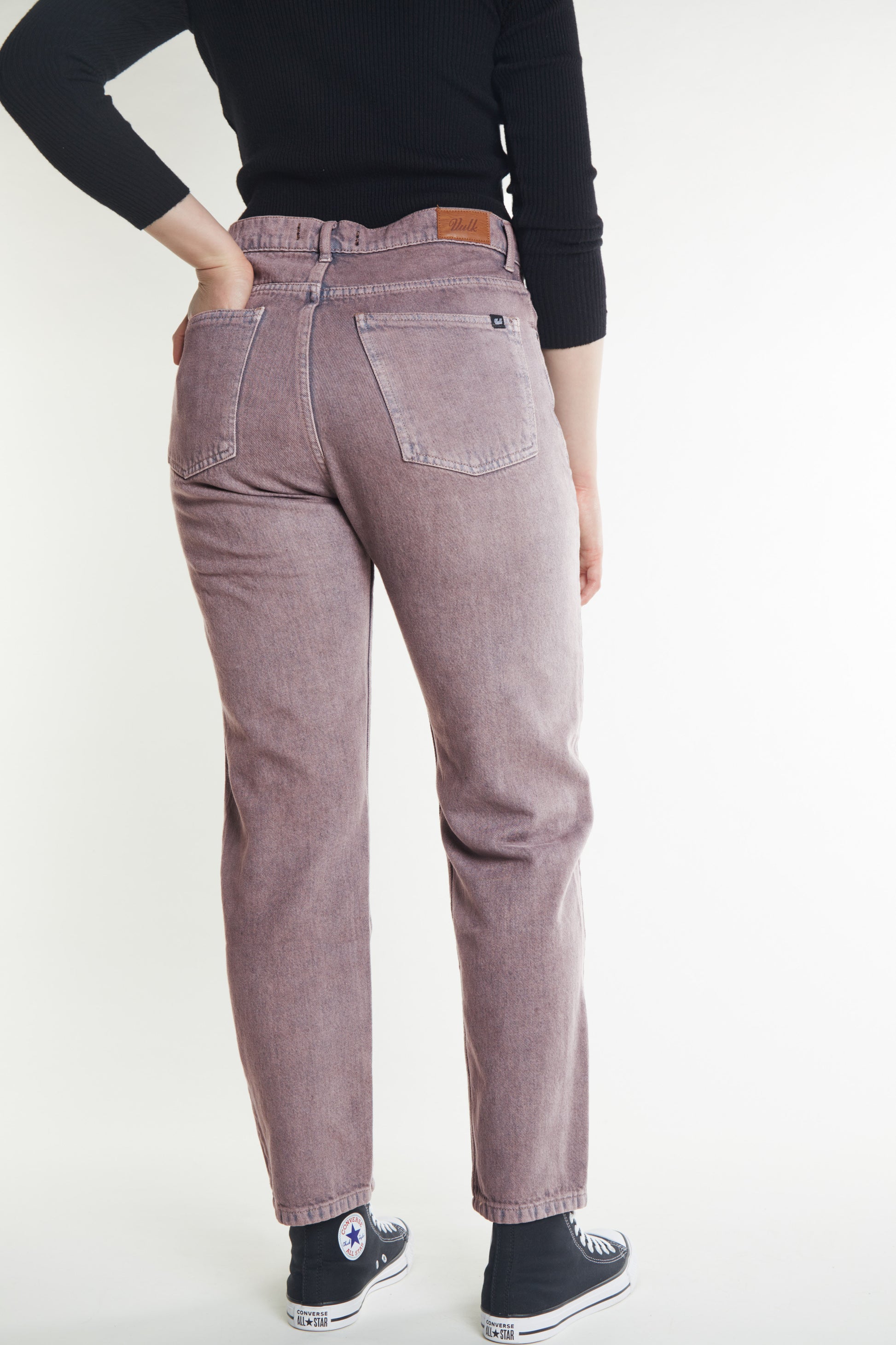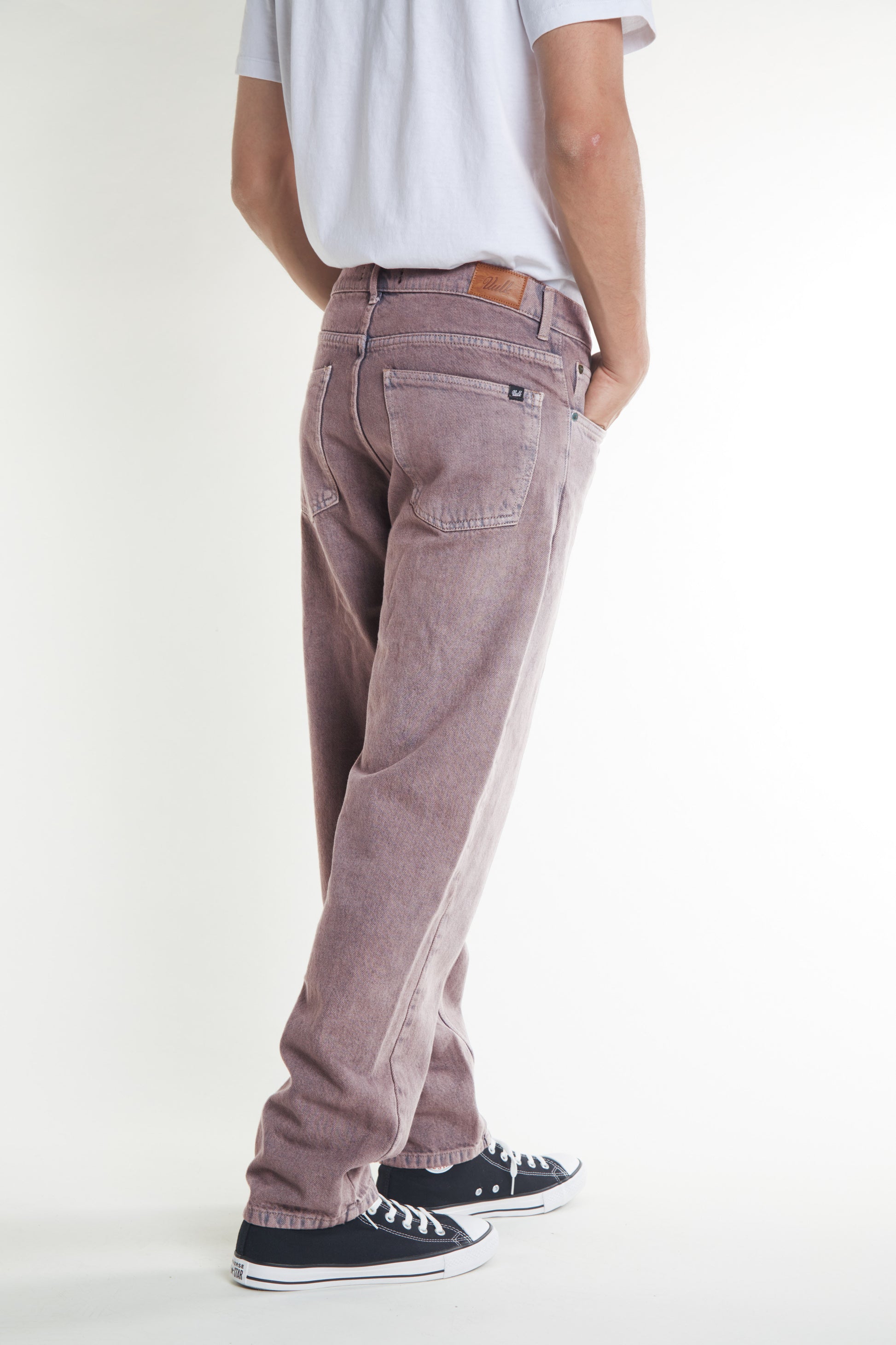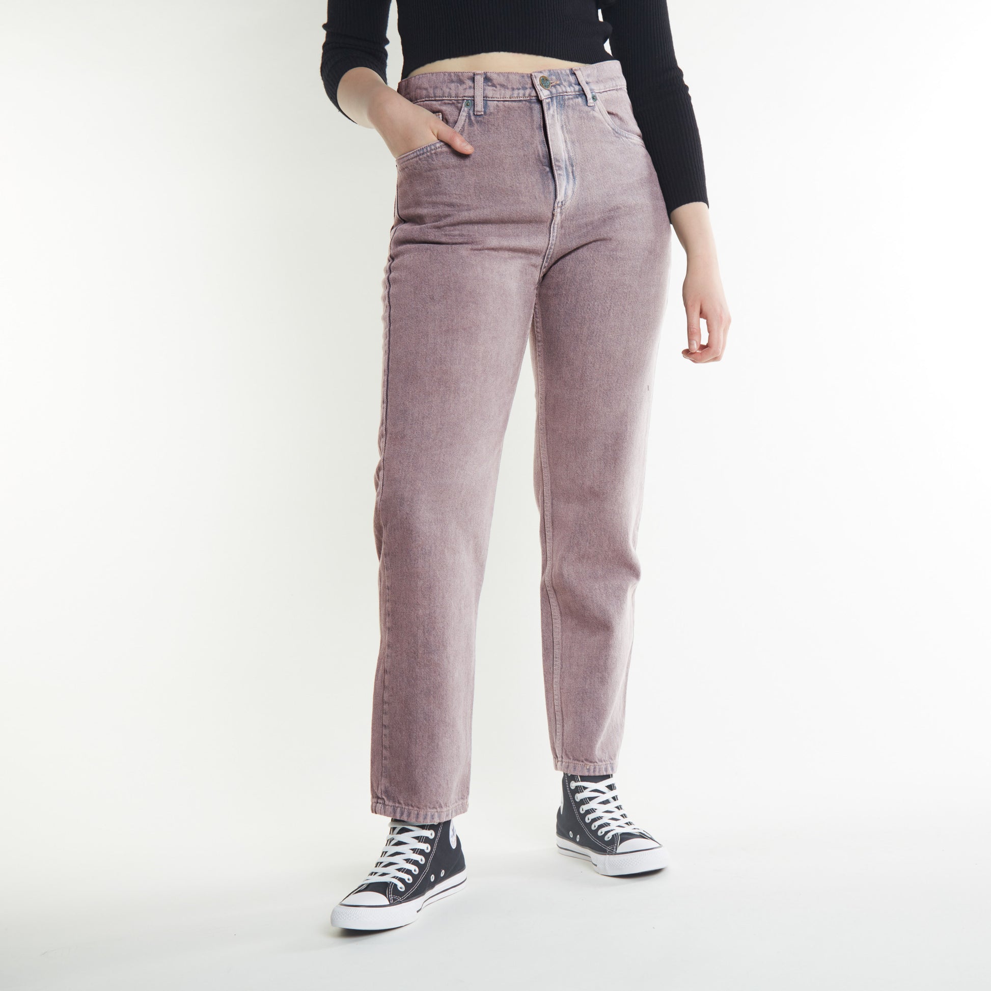 Jean 5 bolsillos, tiro medio alto, relax vintage fit: holgado desde la cadera hasta los tobillos de manera pareja. Tejido rígido 100% algodón. Badana de marca ecocuero camel en cintura y botones y remaches personalizados. Dobladillo regular apertura de ruedo de 20 cm. El tejido tiene un proceso de matizado color oxido grisáceo