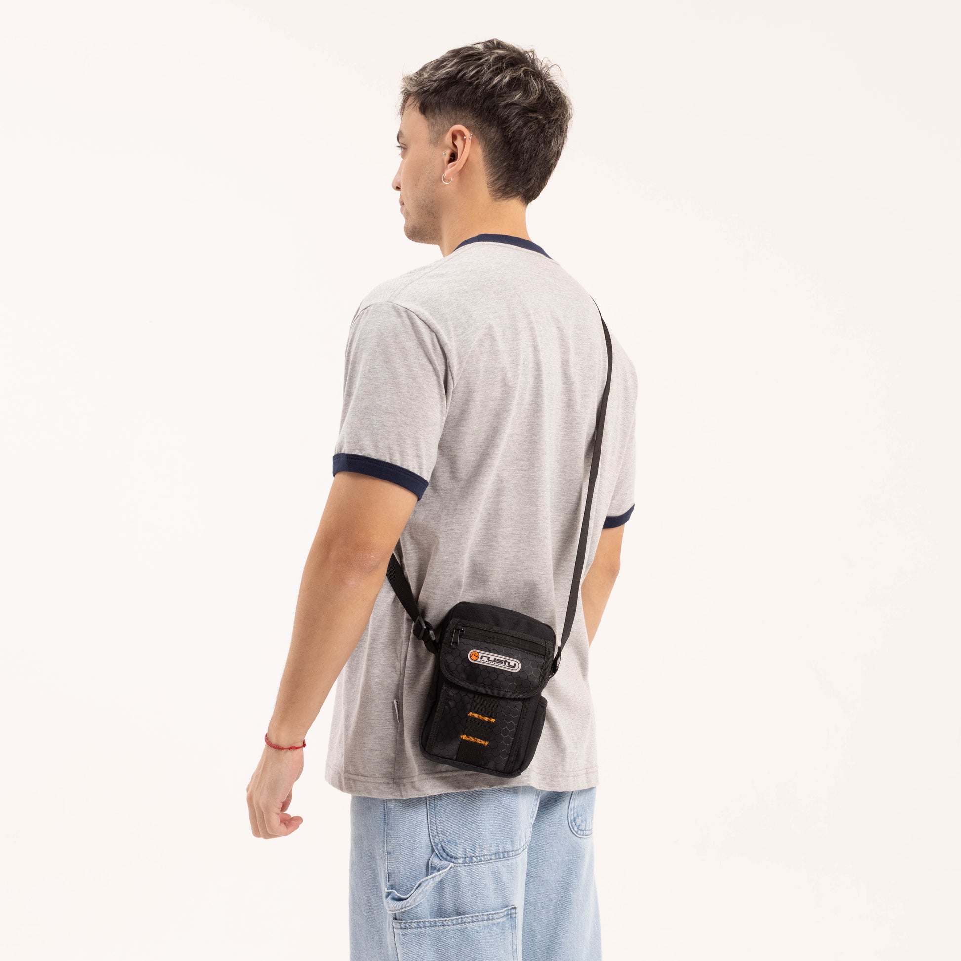 Detalles: Capacidad 1L. Correa ajustable. Etiqueta de goma alta definición. Compartimiento principal con cierre. Bolsillo secundario en el frente con tapa y velcro, que a su vez posee sub-compartimientos con cierre en el frente. Posee dos espacios de guardado en el lateral para objetos pequeños. Detalle de costuras a contratono.