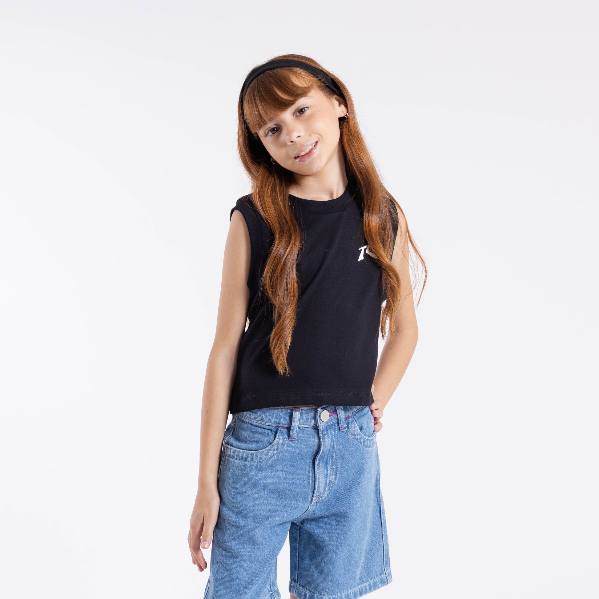 Detalles: Musculosa niñas, relaxed, corta, con cuello y sisas de ribb, logo delantero y estampa en espalda.