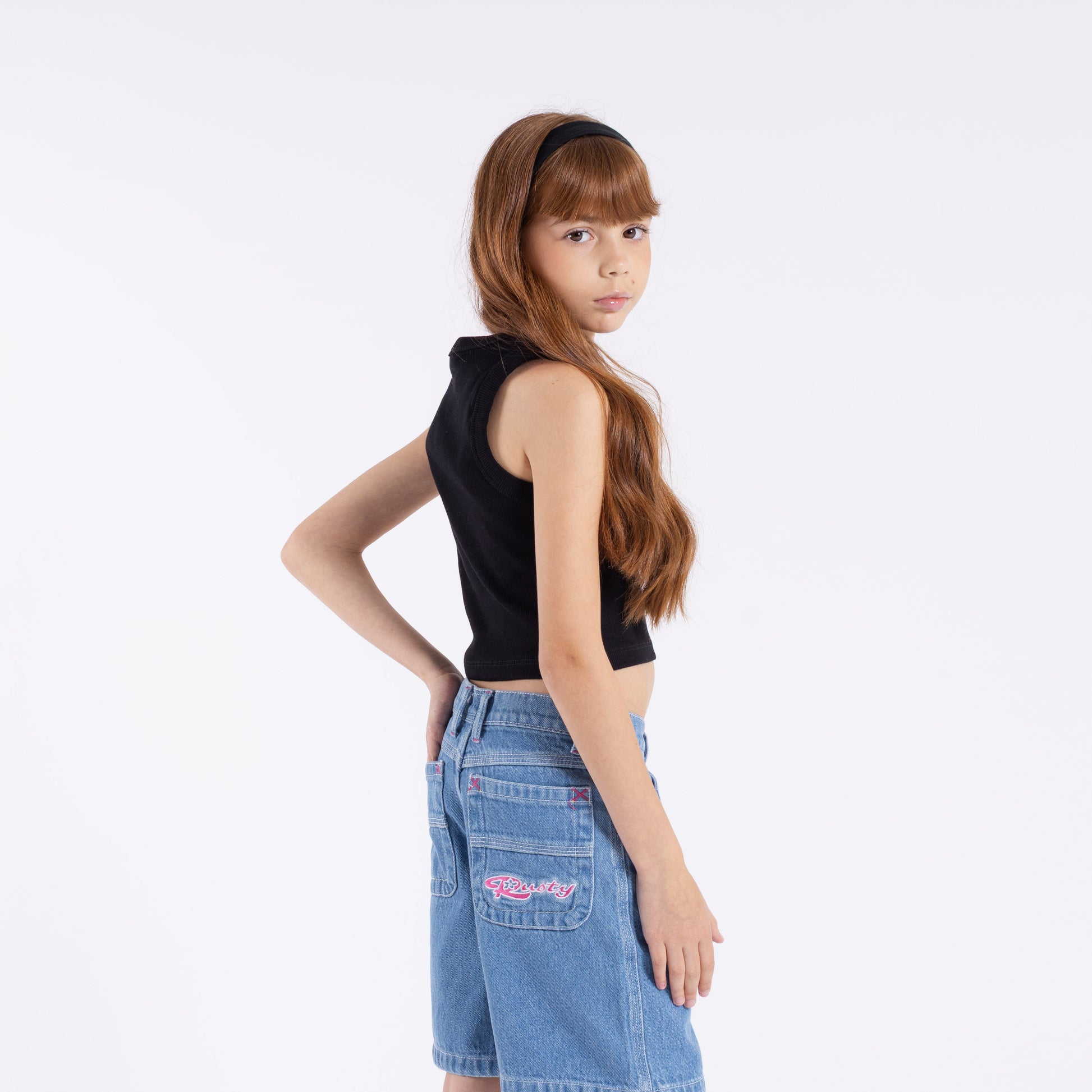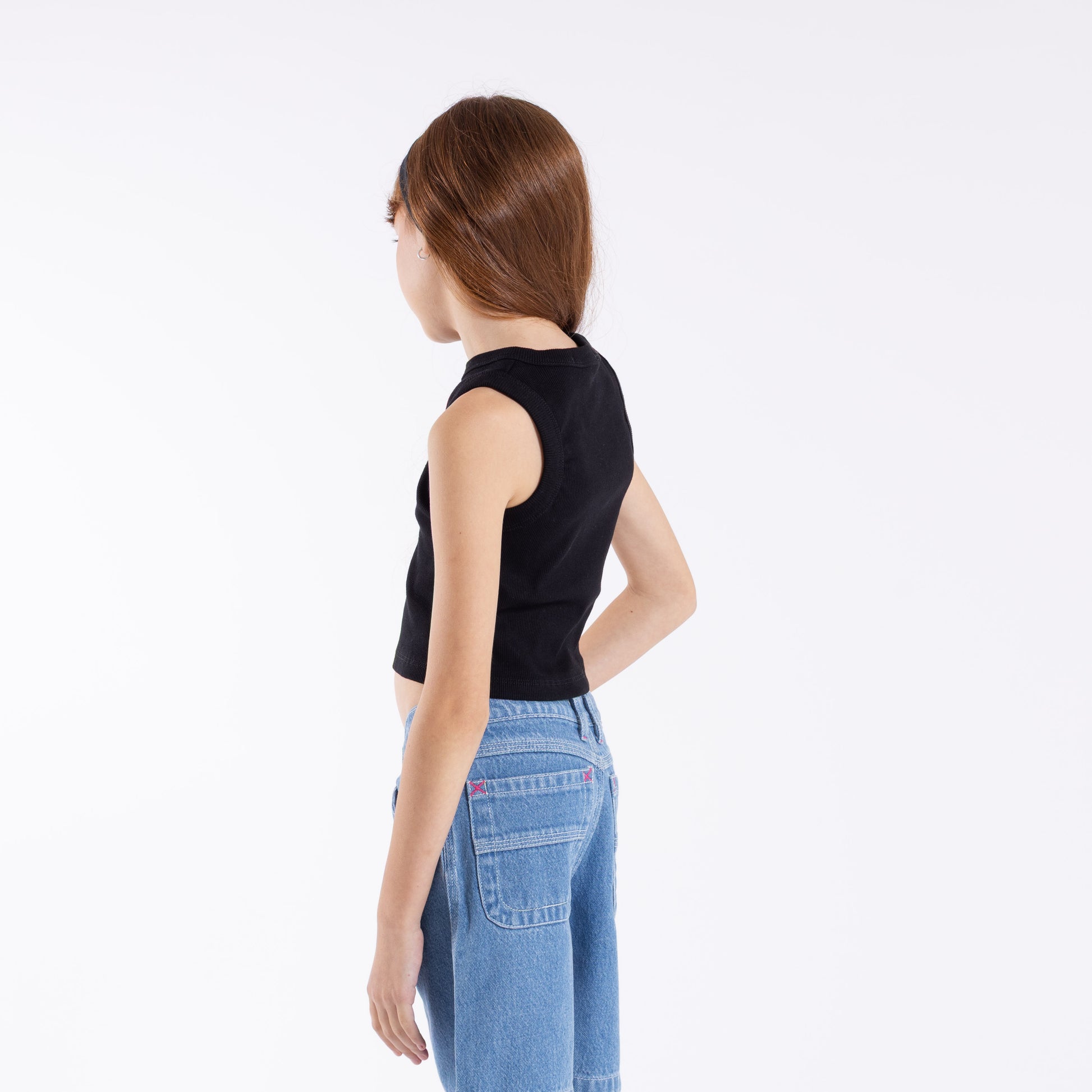 Detalles: Musculosa morley niñas, slim fit crop, corte racer con logo bordado contratono en delantero