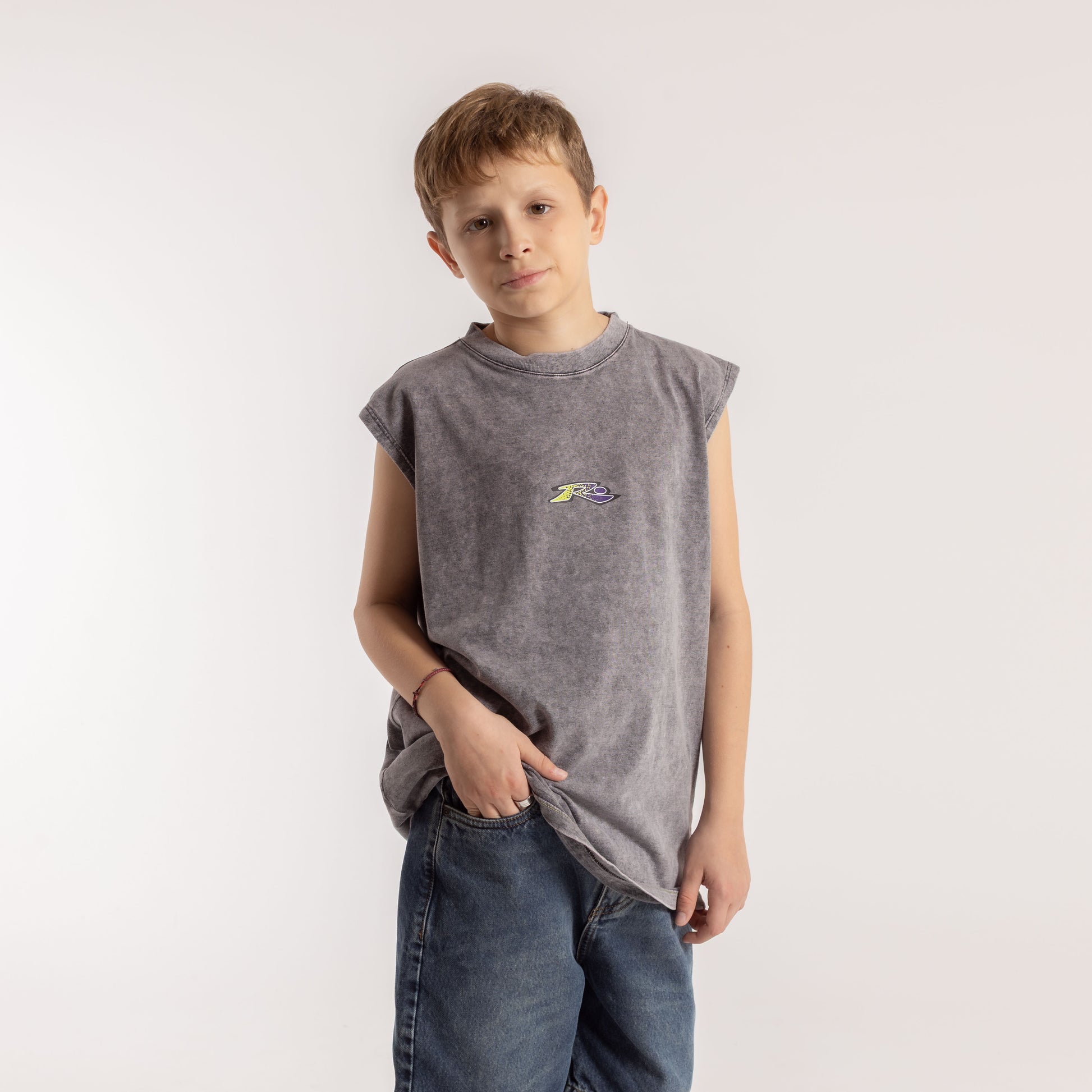 Detalles: Estampa frente y espalda. Láser process, prelavado y preencogido. Costuras bicolor en ruedo.