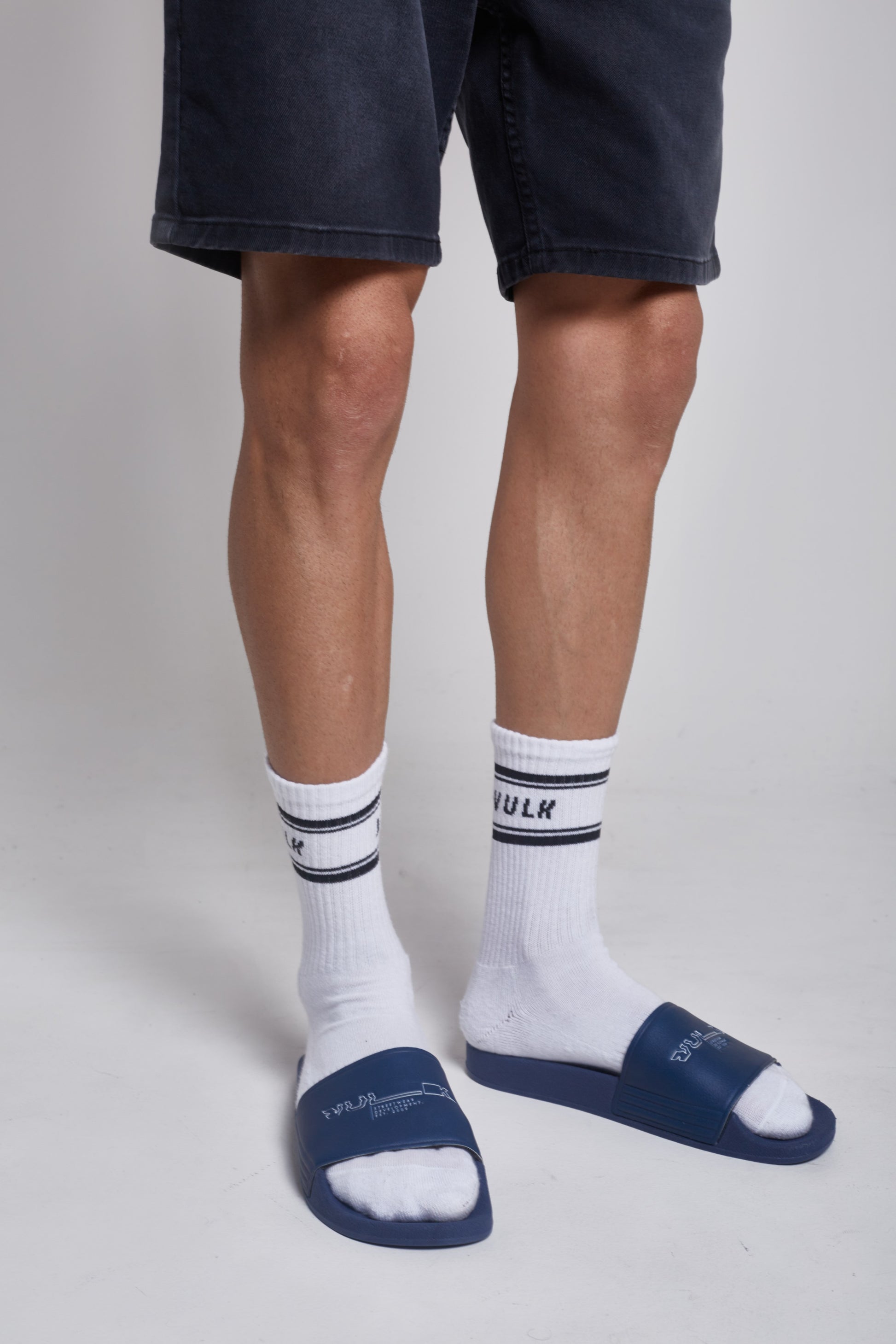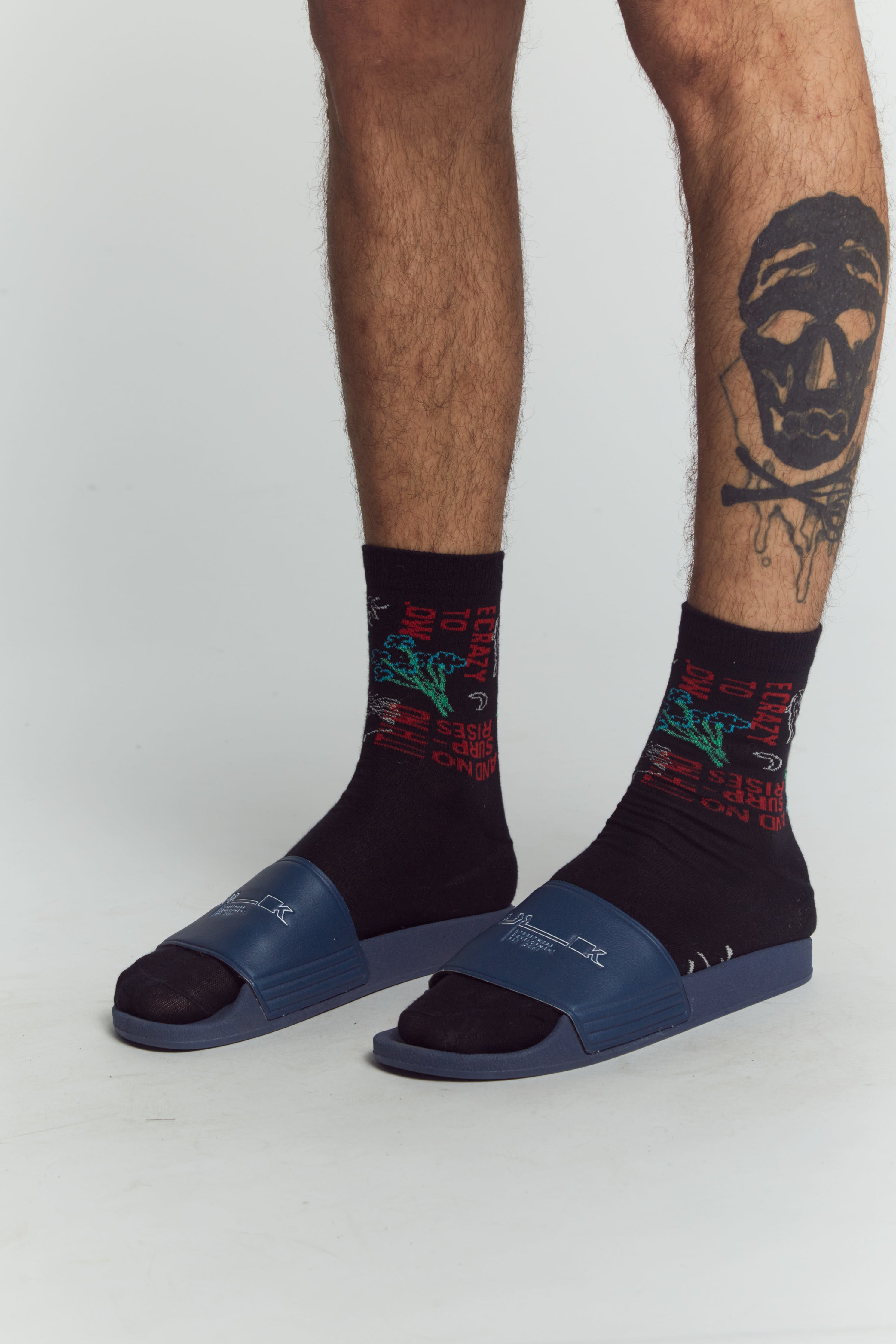 Ojotas slides con grabado y estampa en la capellada y logo de la marca estampado en la suela. Suela de PVC y capellada de poliéster. Talles del 37 al 46