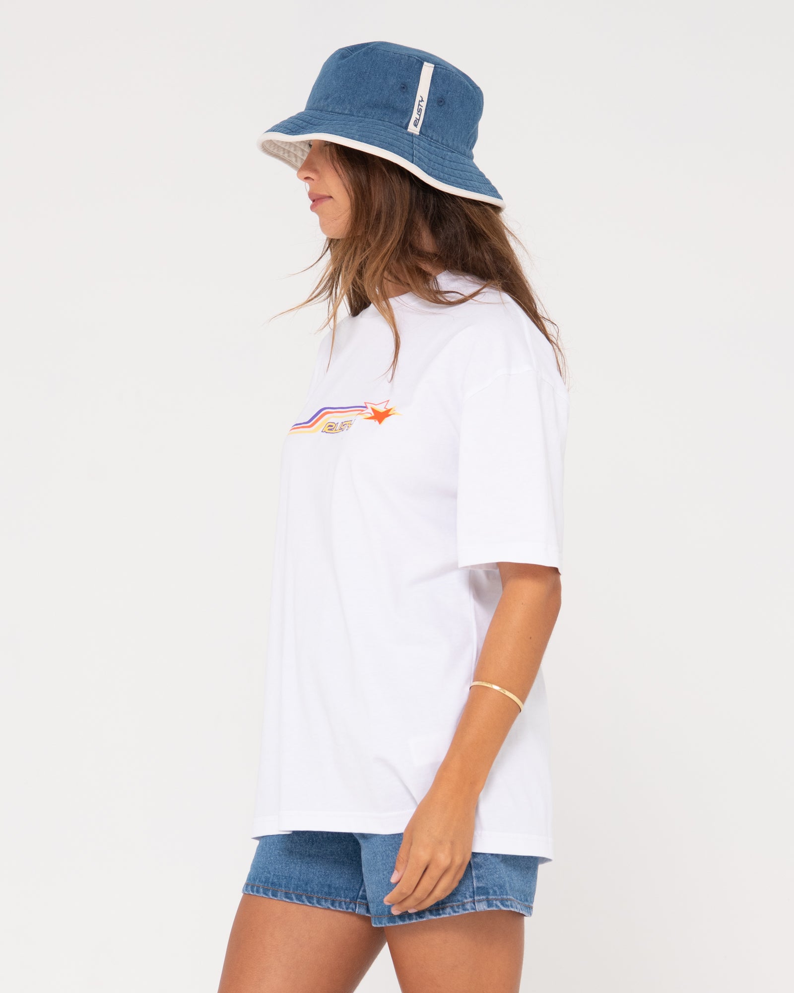 Sombrero piluso reversible con logotipos Rusty heritage y detalle de recorte y vivo del ala, combinado.