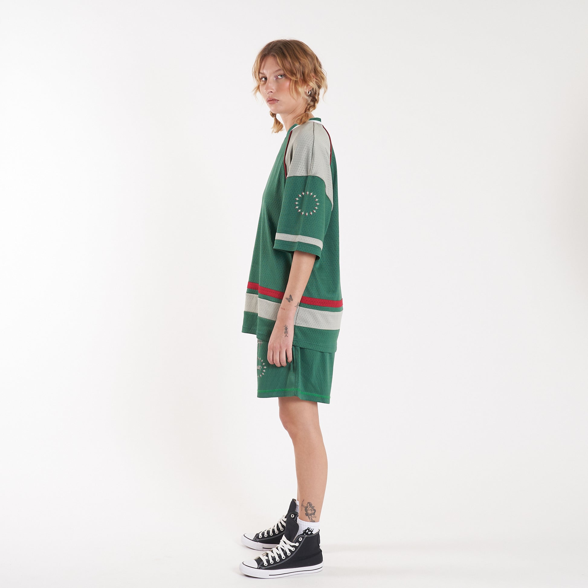 Detalles: Cuello tejido, recortes y vivos a contratono. Estampa en mangas, frente y espalda