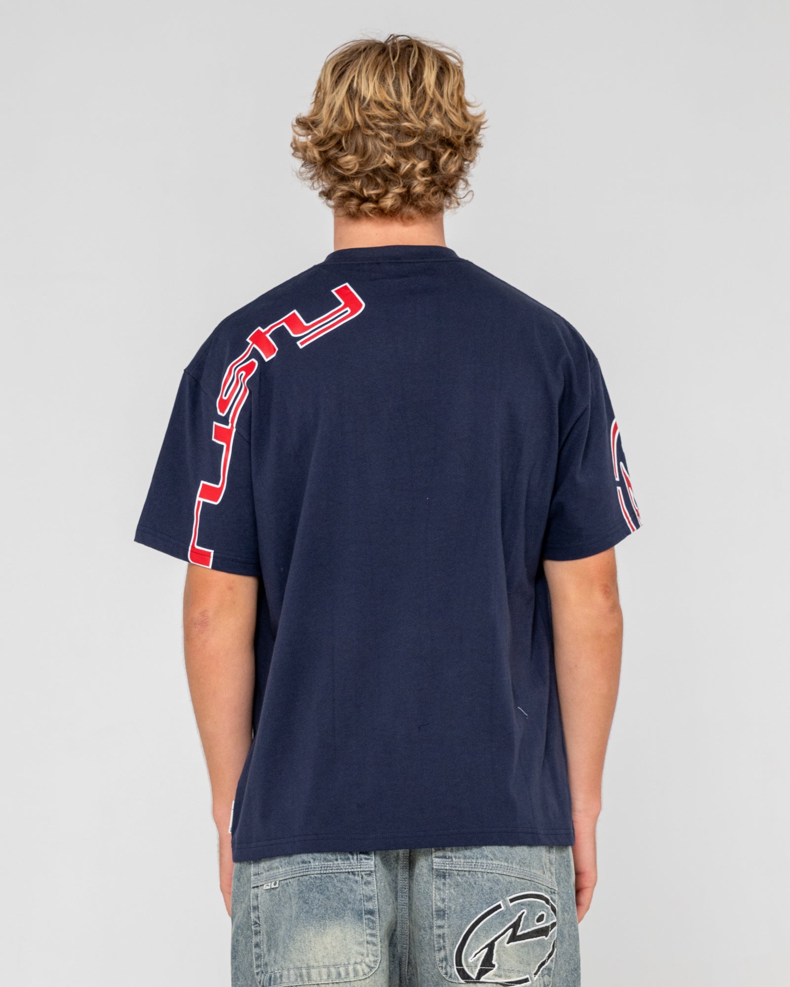 Una remera navy blue que se aleja de lo común sin esfuerzo. La estampa Rusty recorre la manga y el hombro trasero, así que el detalle aparece cuando te movés, cuando girás, cuando menos lo esperás. El algodón jersey la hace liviana y fresca, con ese calce regular que no ajusta ni sobra — te la ponés y ya estás. Funciona con un jean, con una bermuda cargo, con lo que agarres primero del placard. Para salidas casuales, tardes al sol o simplemente para no pasar desapercibido un martes cualquiera.