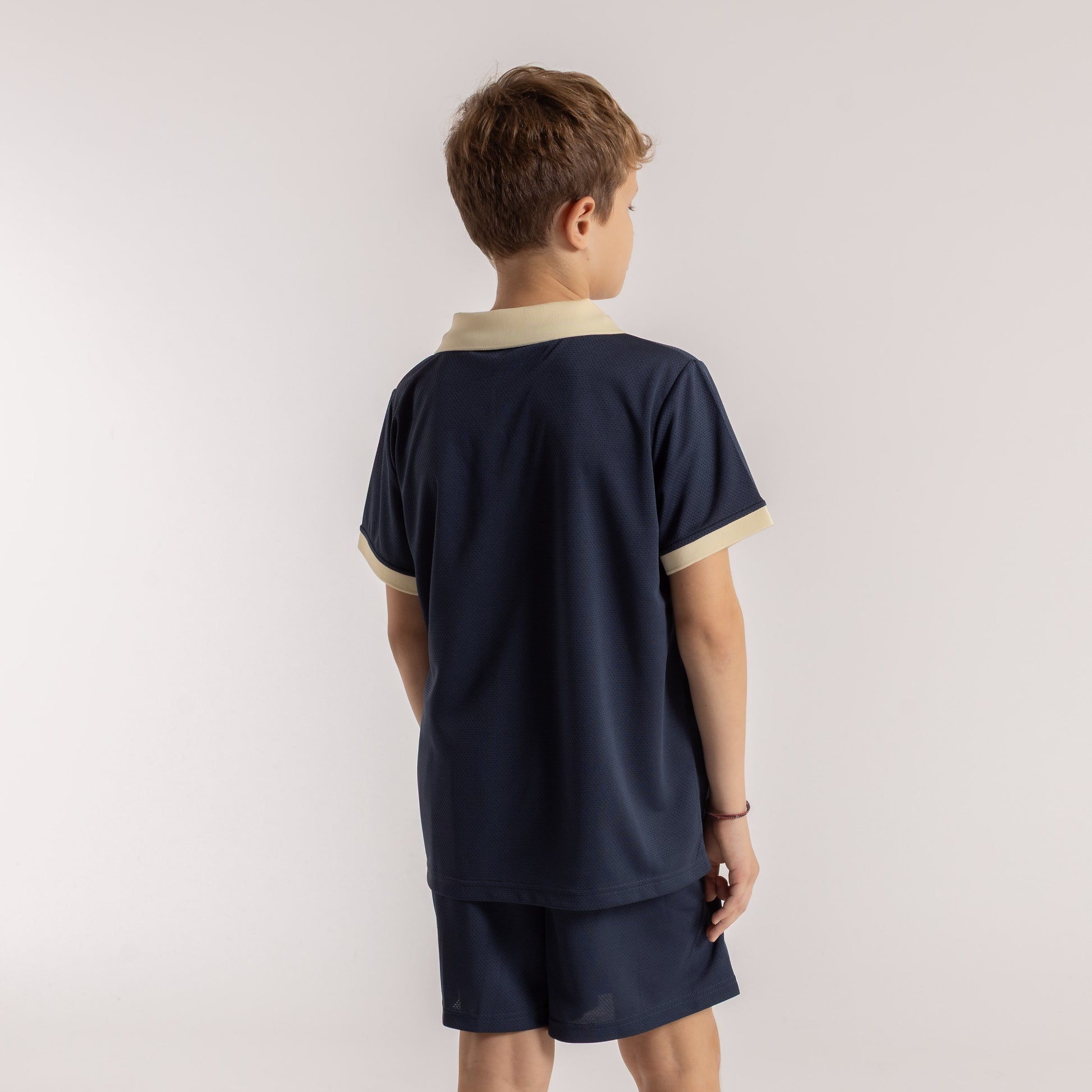 Detalles Logo estampado y logo bordado. Cuello tejido.