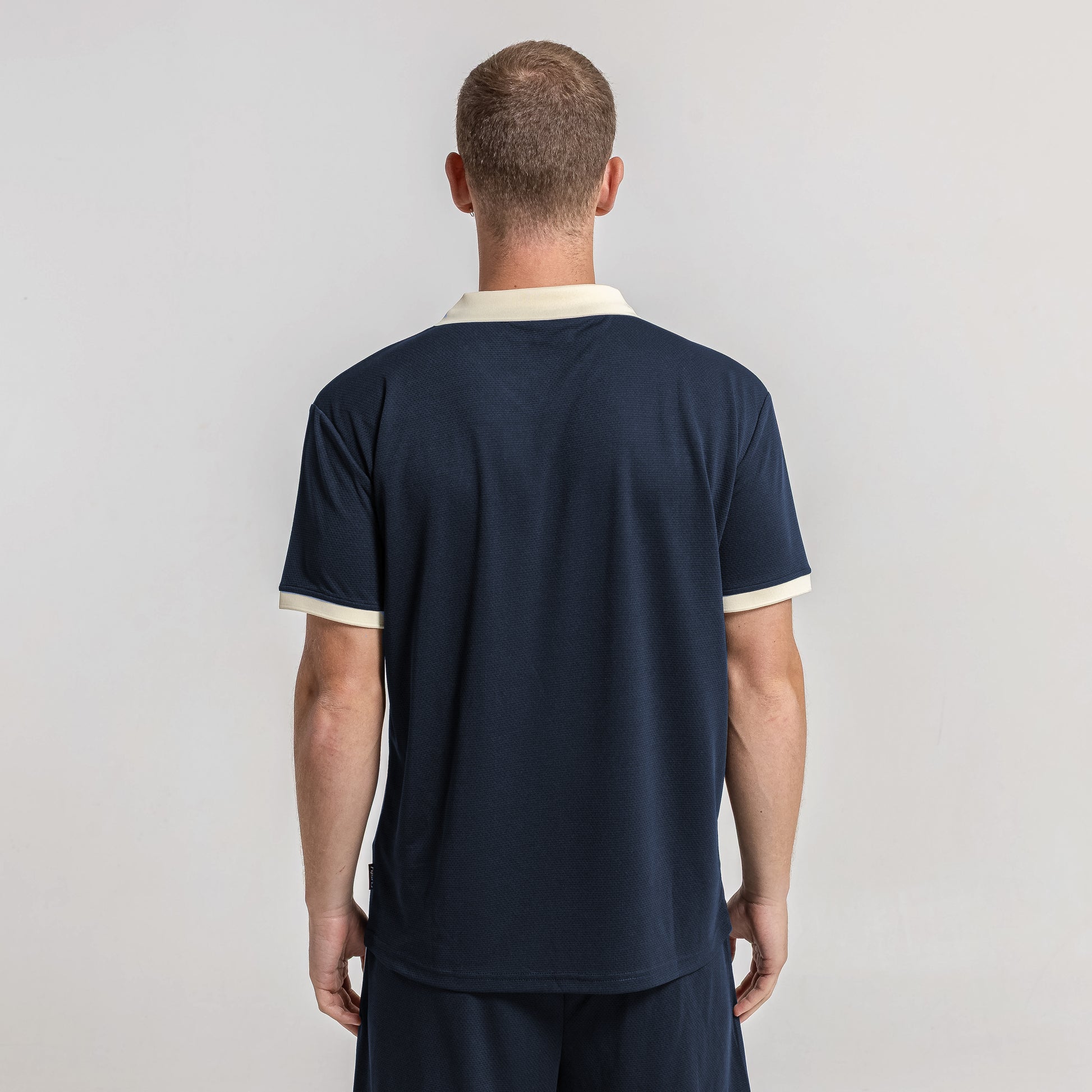 Detalles Logo estampado y logo bordado. Cuello tejido.