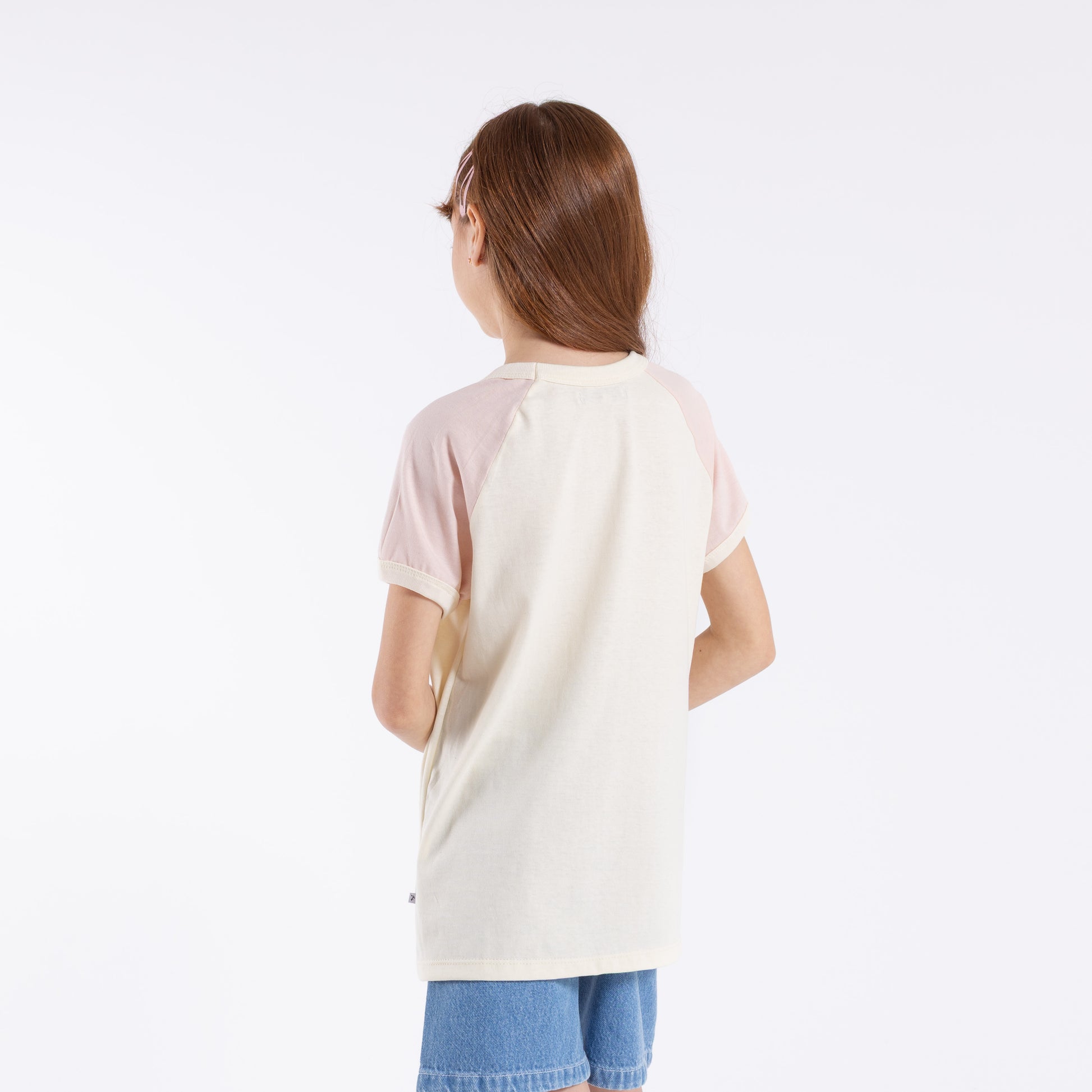 Detalles: Remera niñas manga corta raglan, a contratono, con cuello y puños de ribb combinados. Estampa delantera a un color, grifa de marca.