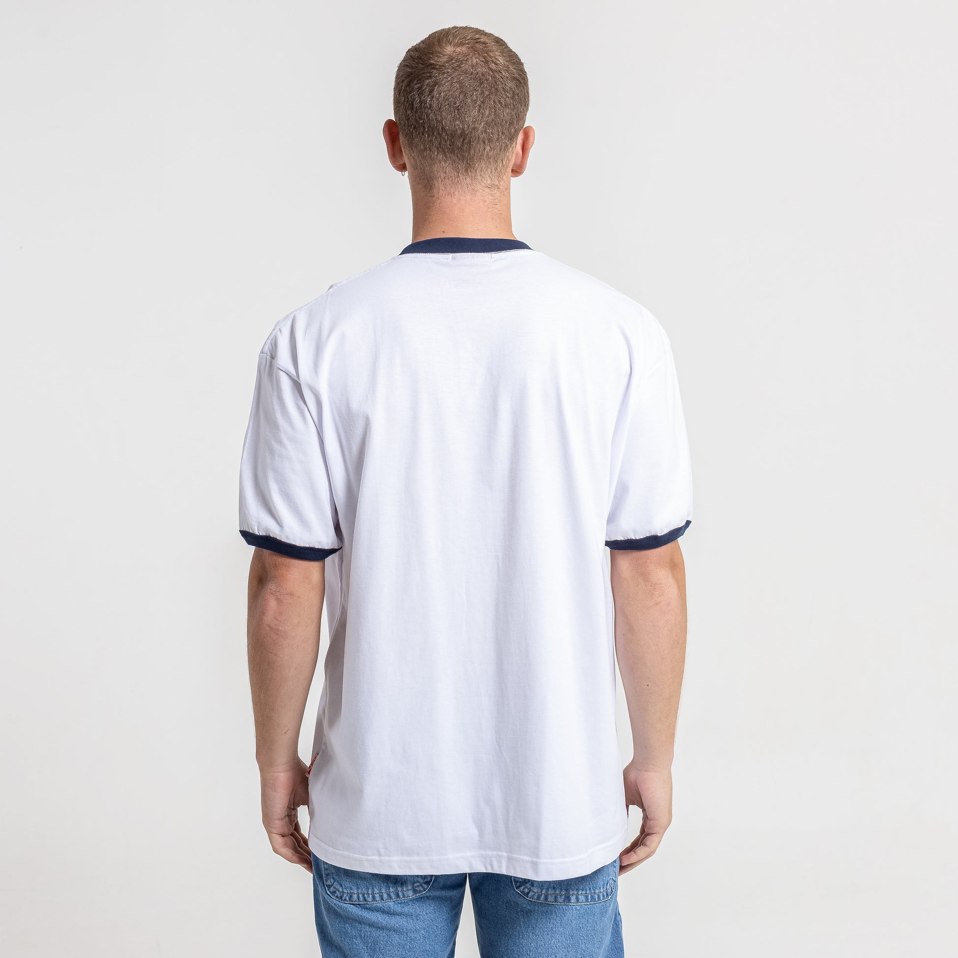 Detalles Cuello y puños a contratono. Etiqueta termoadhesiva delantera.