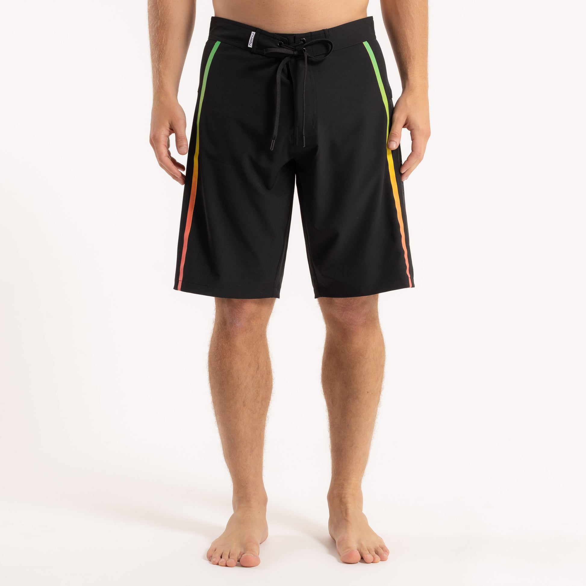 Detalles Cintura fija, con cordón chato antideslizante y punteras plásticas personalizadas. Recortes laterales. Bolsillo lateral con cierre. Logo con técnica de perforado en lateral. Estampa con relieve.