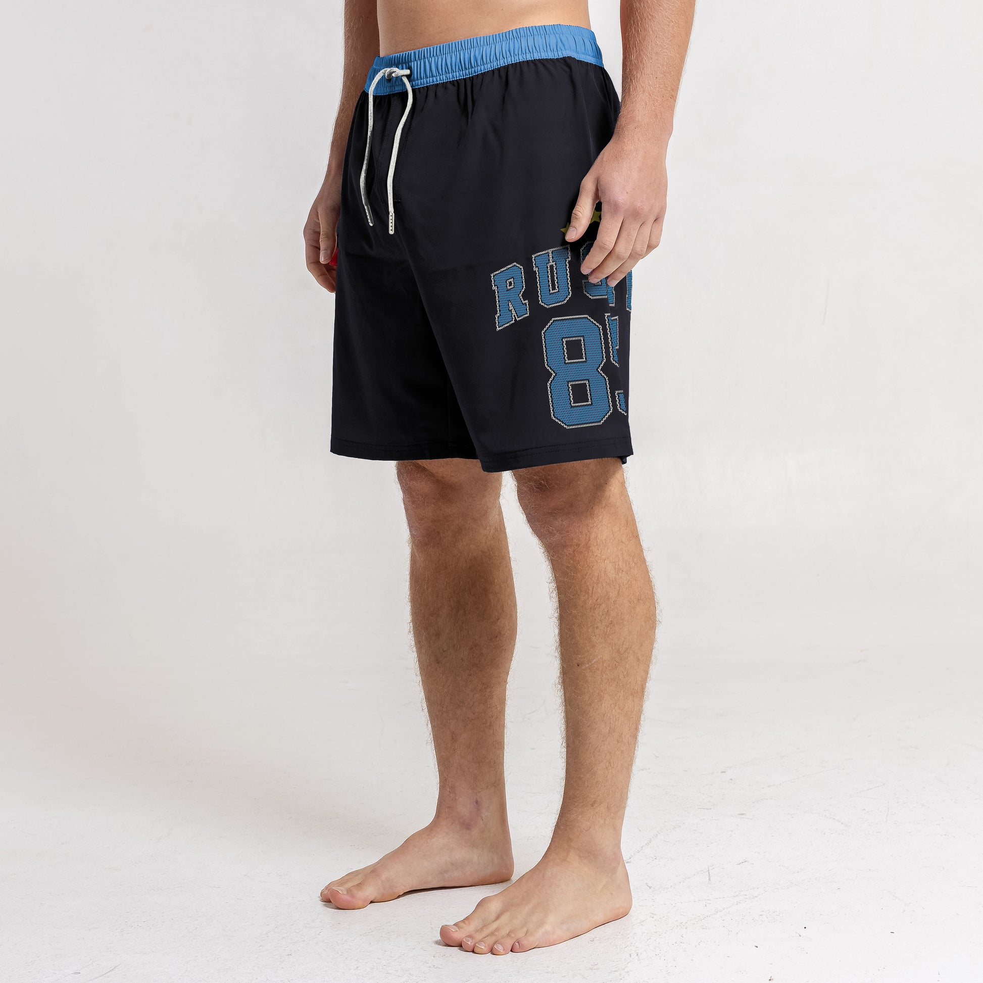 Detalles Cintura elastizada a contratono, con cordón tubular y punteras plásticas personalizadas. Suspensor interno de mesh. Bolsillo plaqué lateral con patch tejido y festoneado. Estampa lateral.