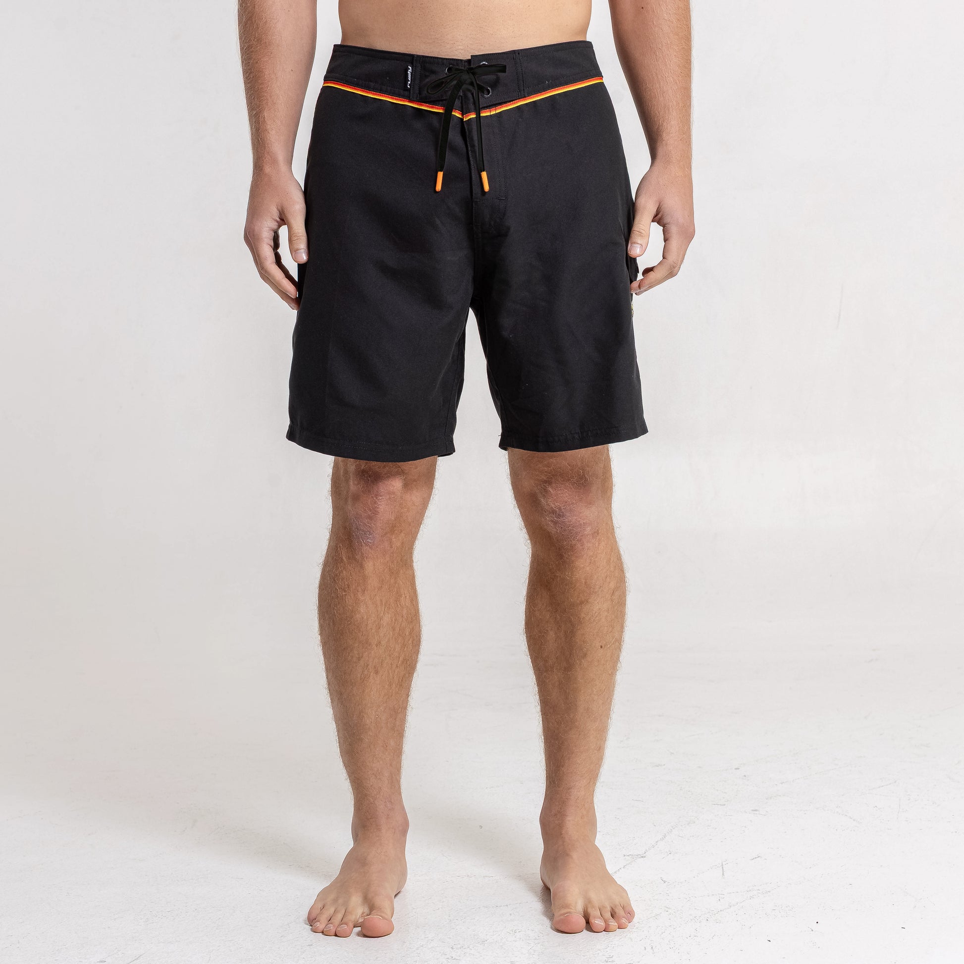 Detalles Cintura fija con galón tejido, cordón chato antideslizante y punteras plásticas personalizadas. Bolsillo lateral y trasero plaqué con tapa y botón. Etiquetas tejidas.