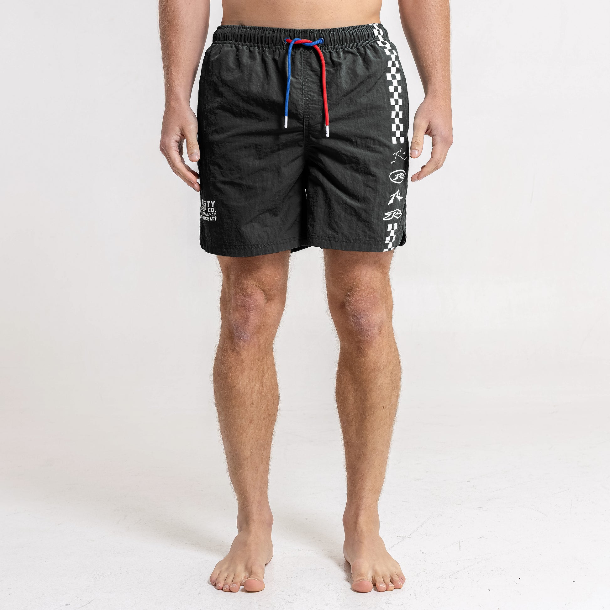 Detalles Cintura elastizada con cordón tubular bicolor y punteras plásticas personalizadas. Suspensor interno de mesh. Bolsillos laterales y bolsillo plaqué trasero. Estampa delantera en serigrafía.