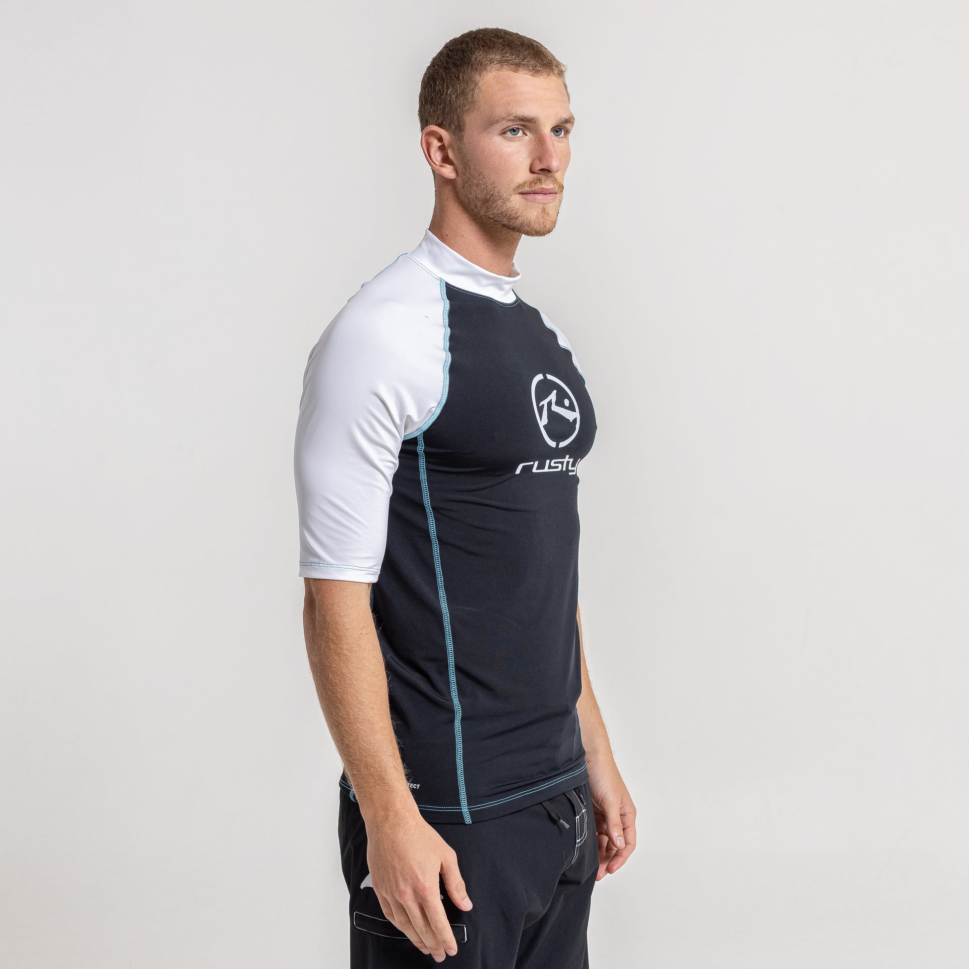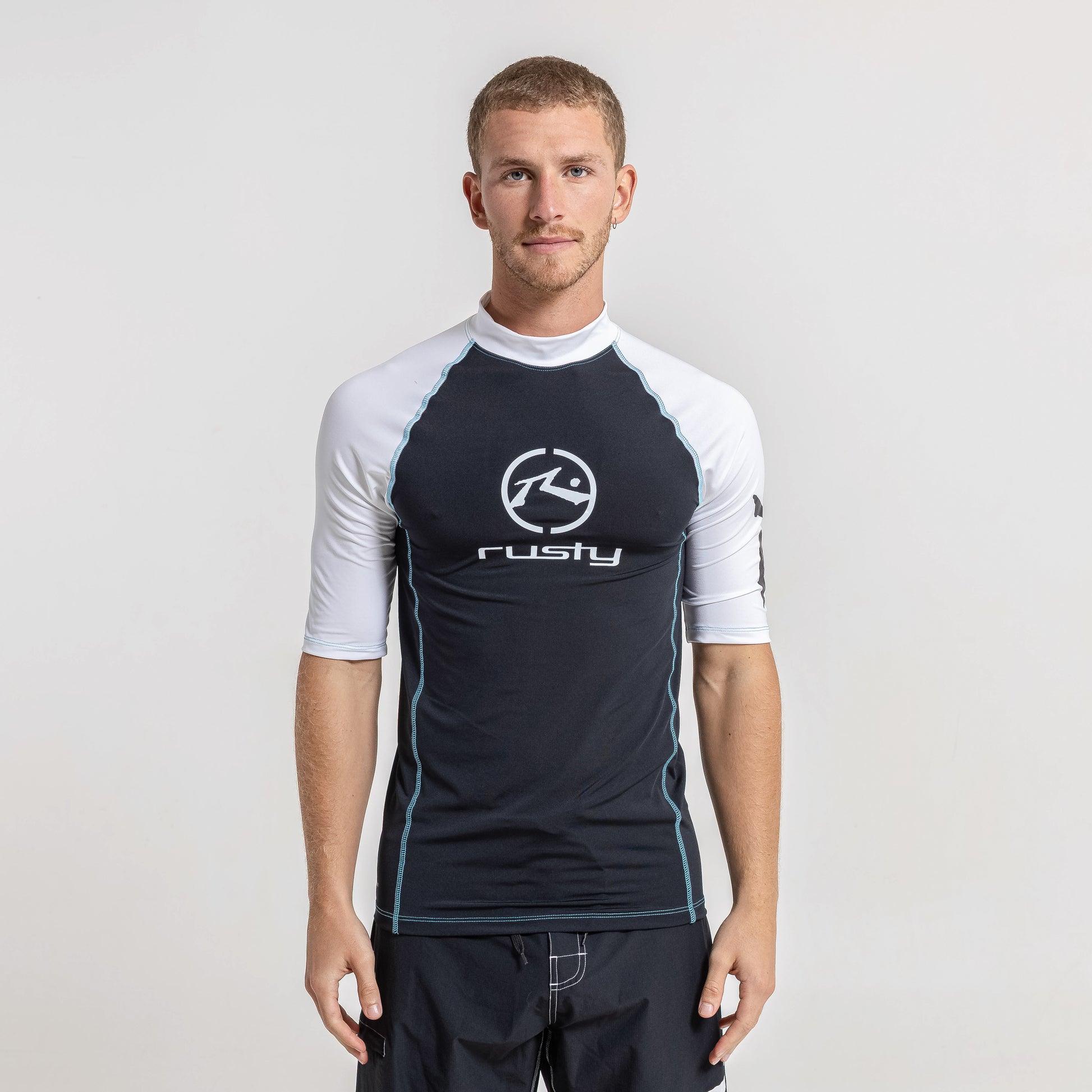 Rashie Rusty Gnaraloo Short Sleeve Surf Top Boys Black/White