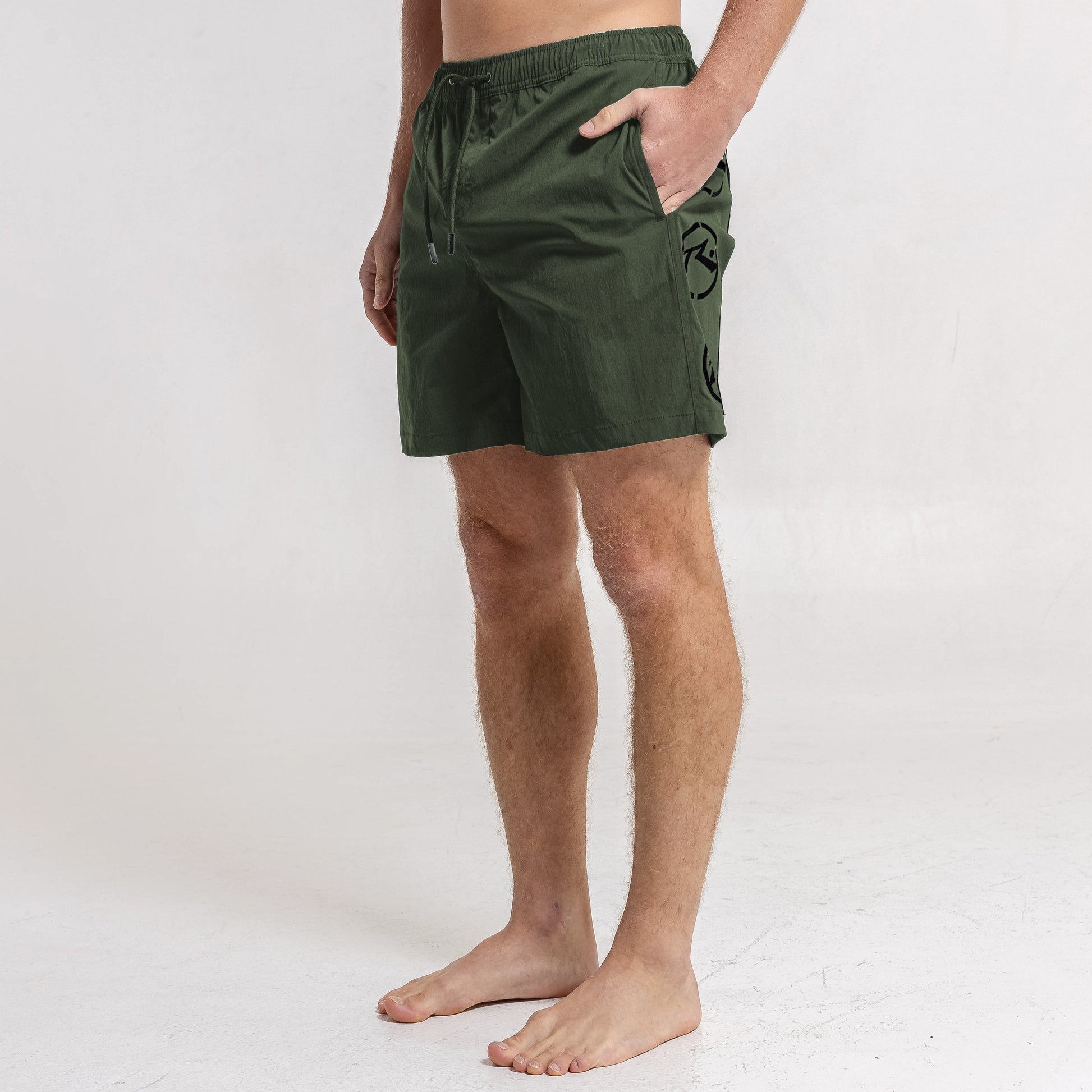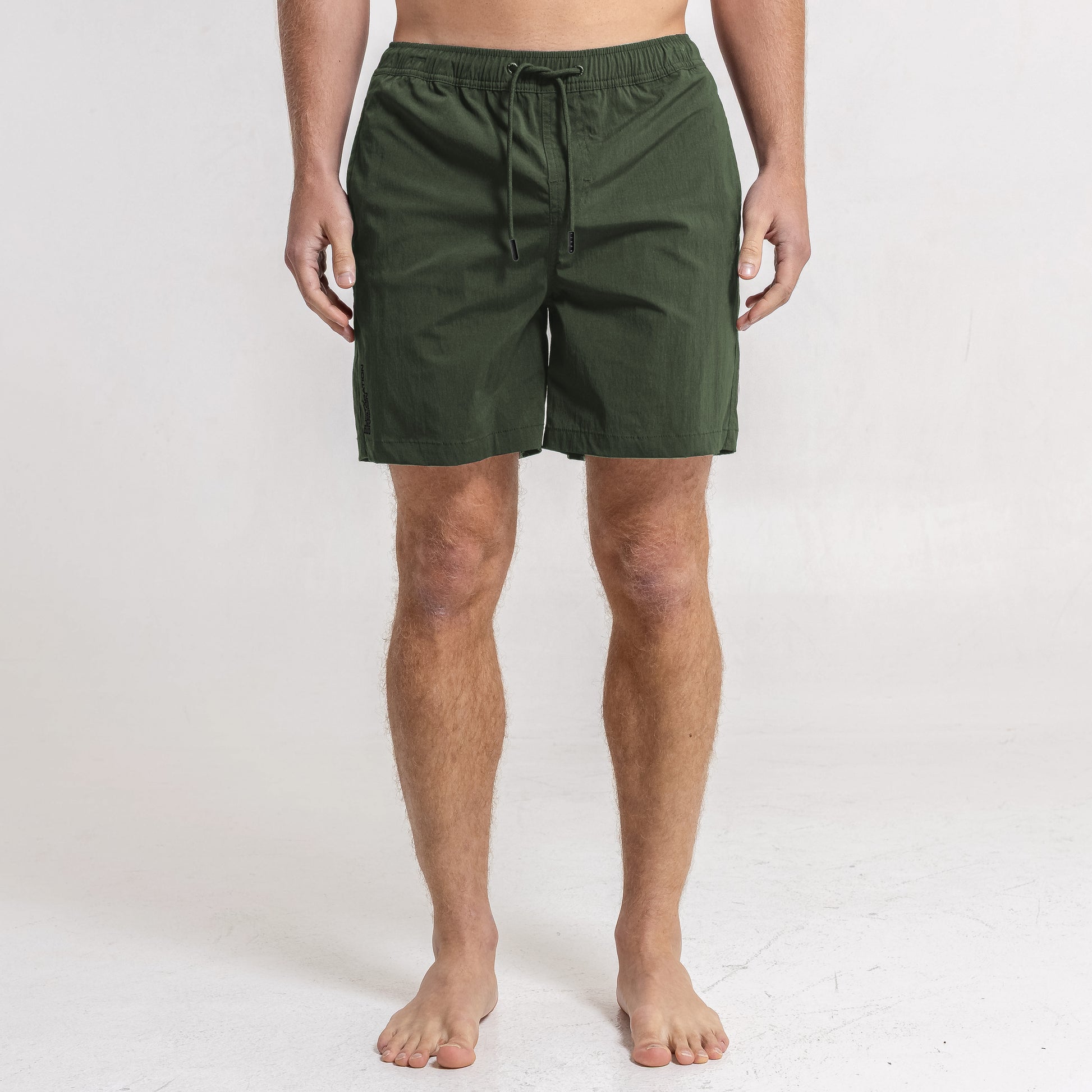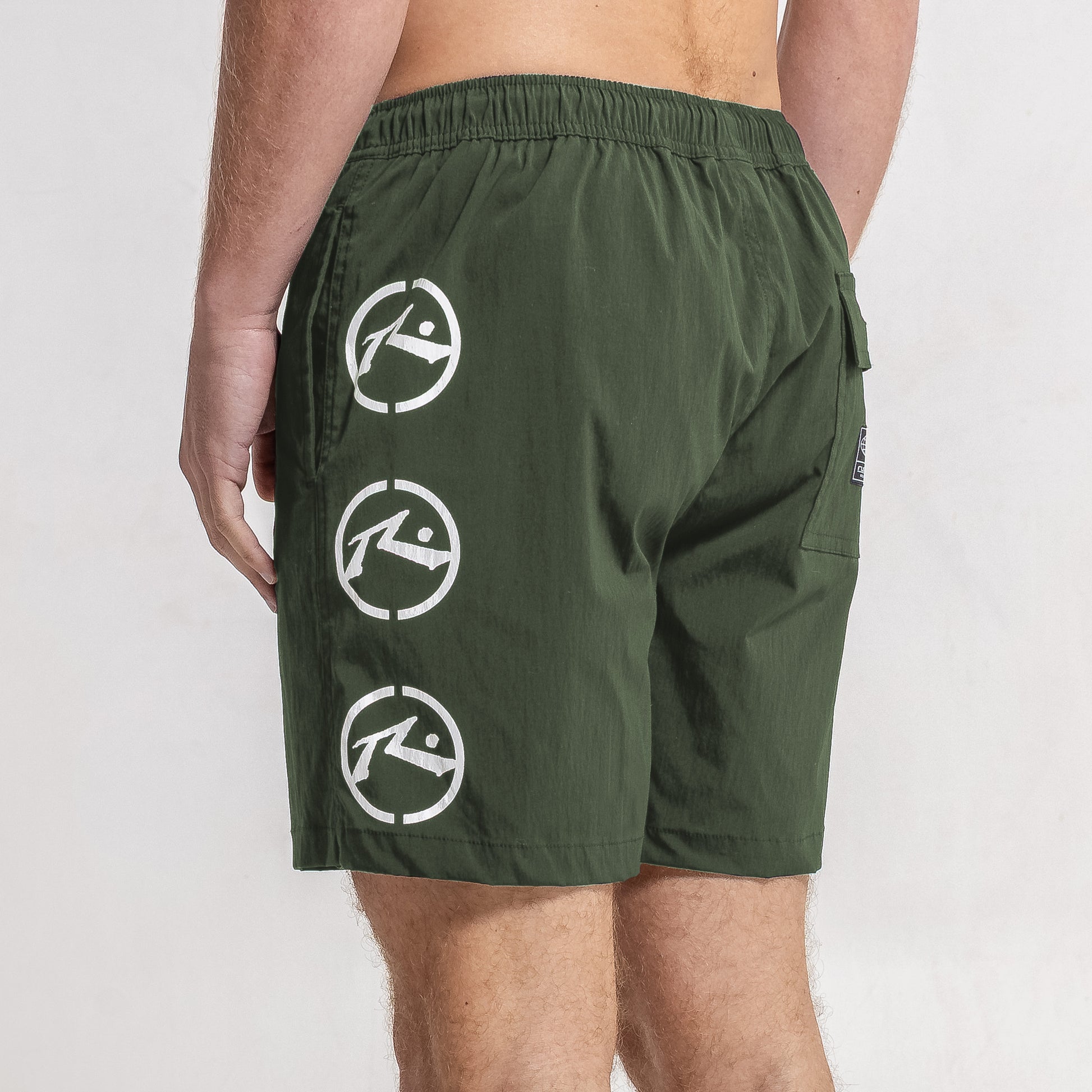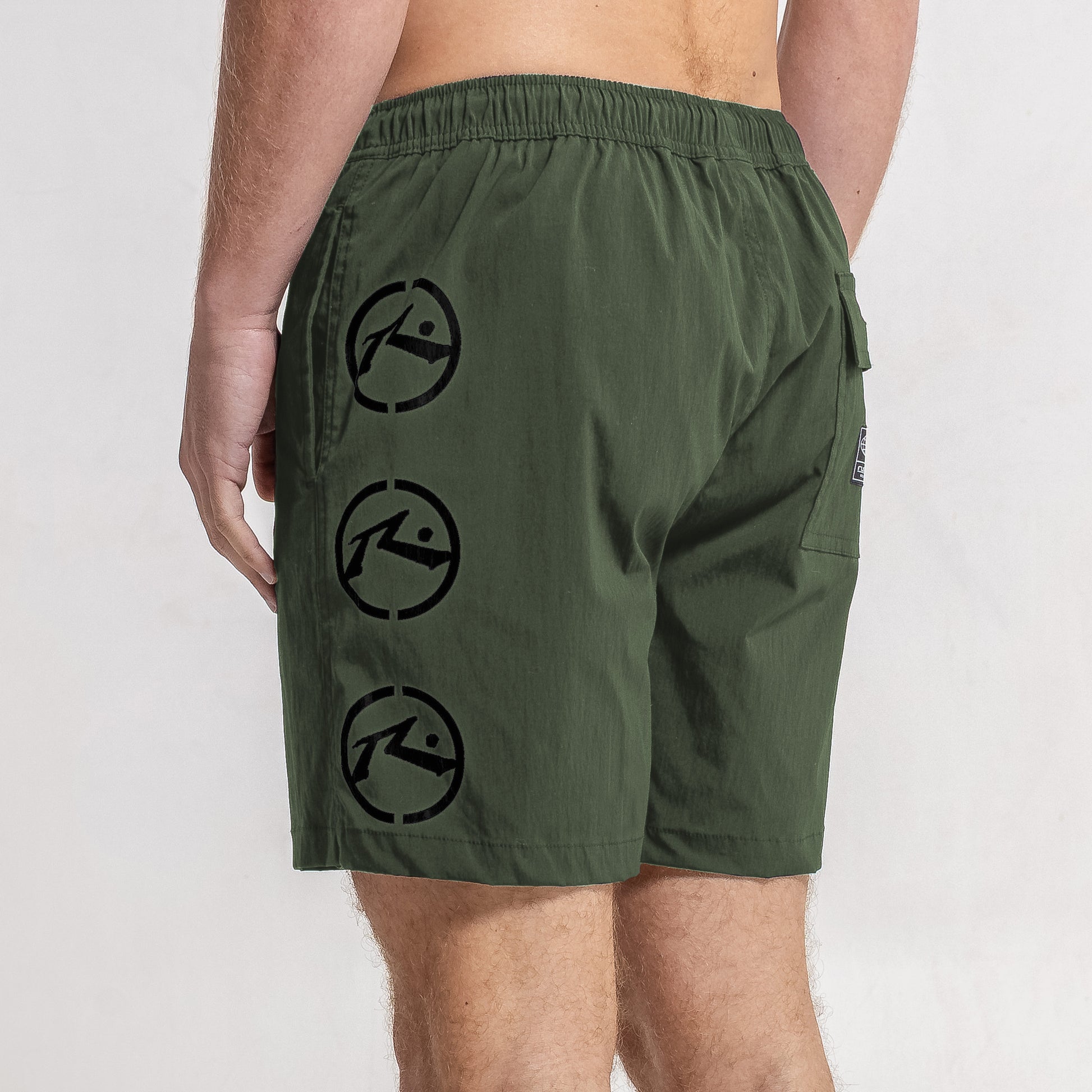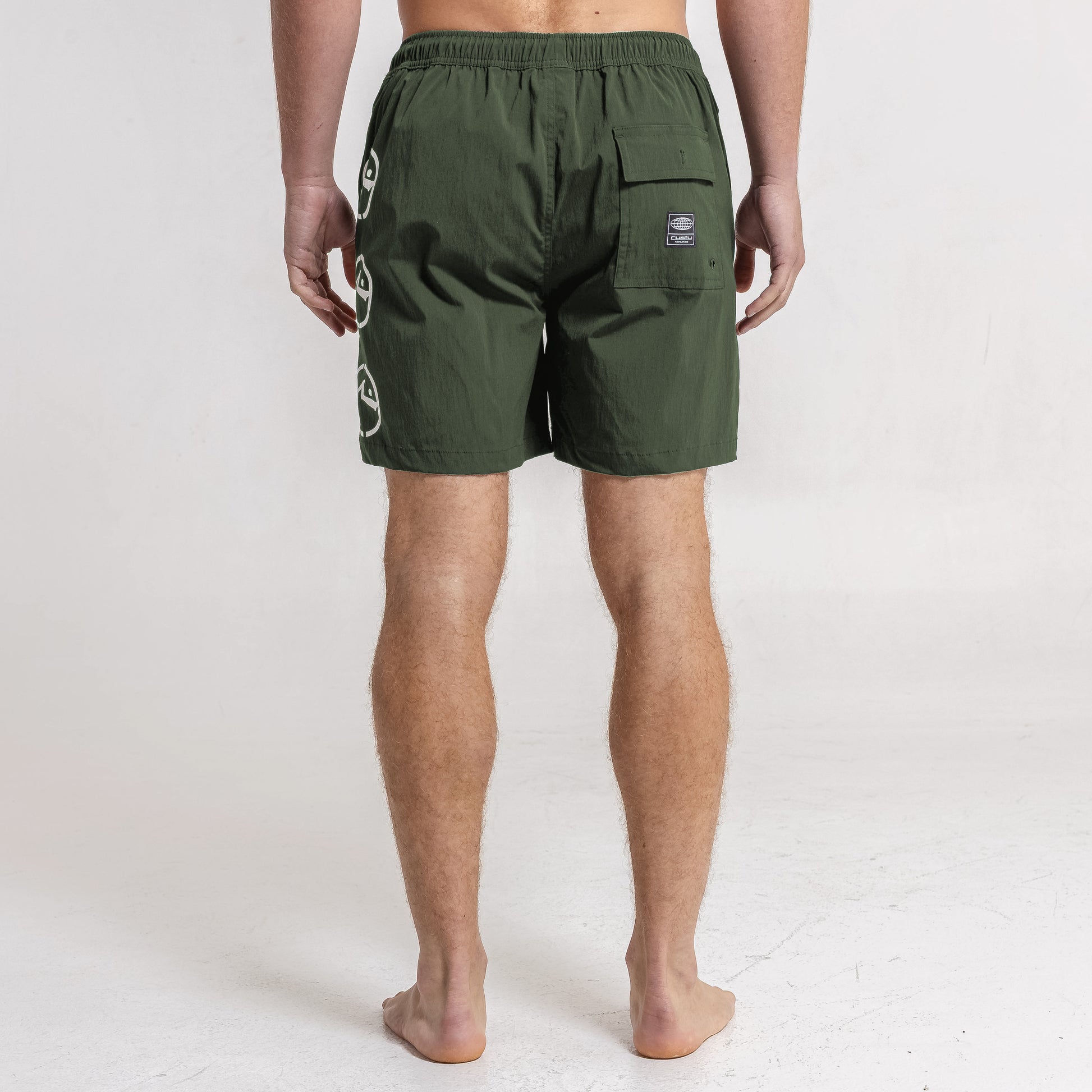 Detalles Cintura elastizada con cordón tubular y punteras plásticas personalizadas. Suspensor interno de mesh. Recortes laterales. Bolsillos laterales y bolsillo trasero plaqué con botón y etiqueta de goma alta definición. Estampa delantera.