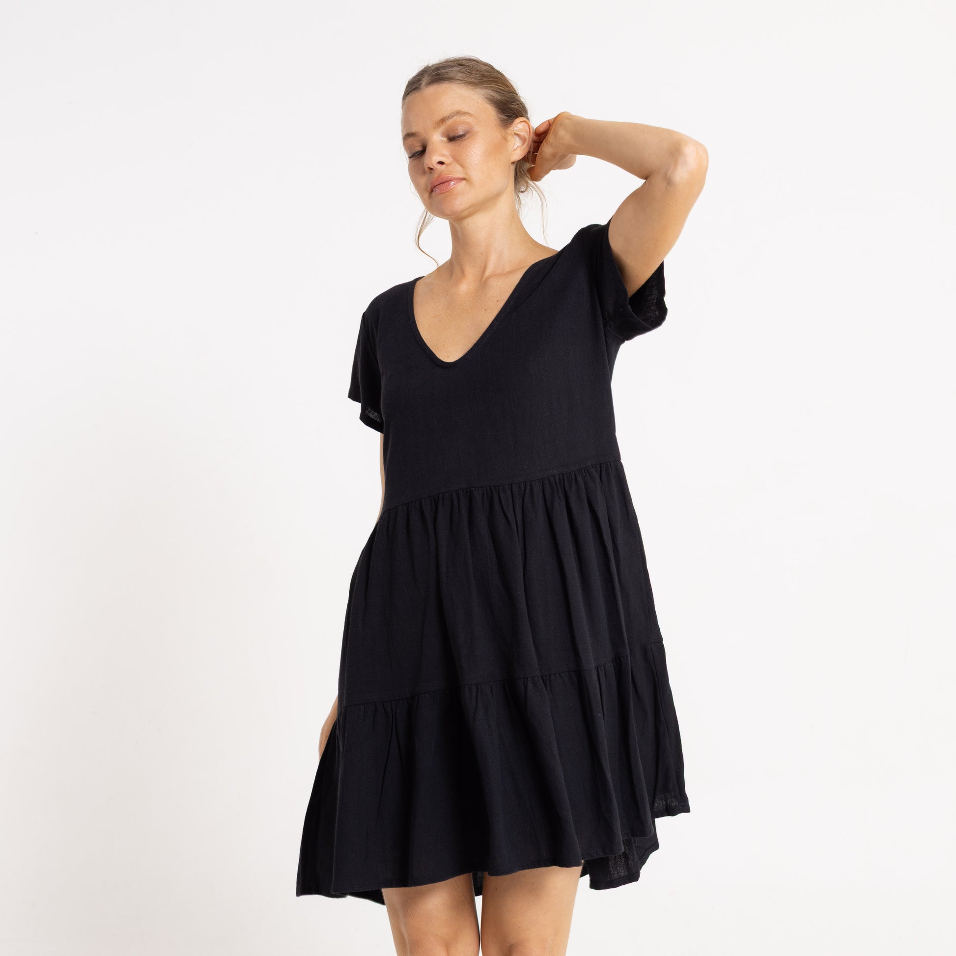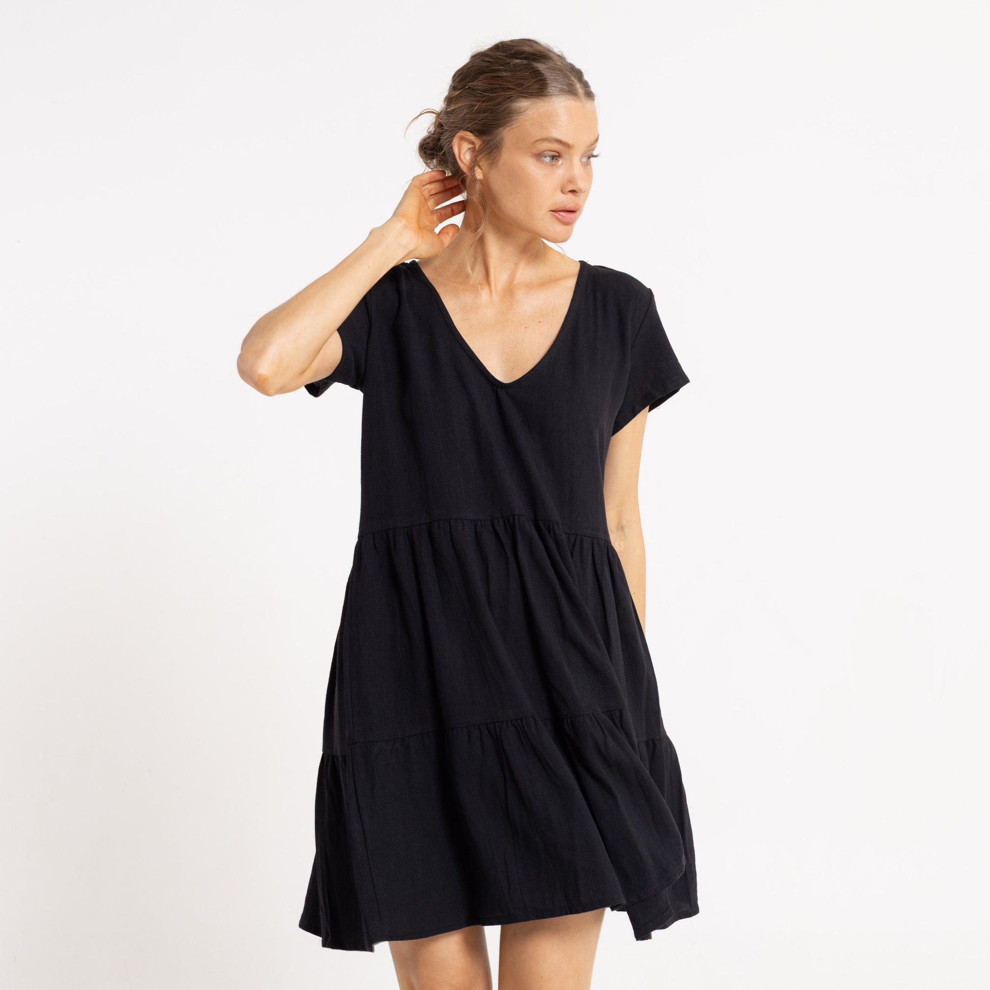 Vestido Rusty Clumsy V Neck Dress Ld Black