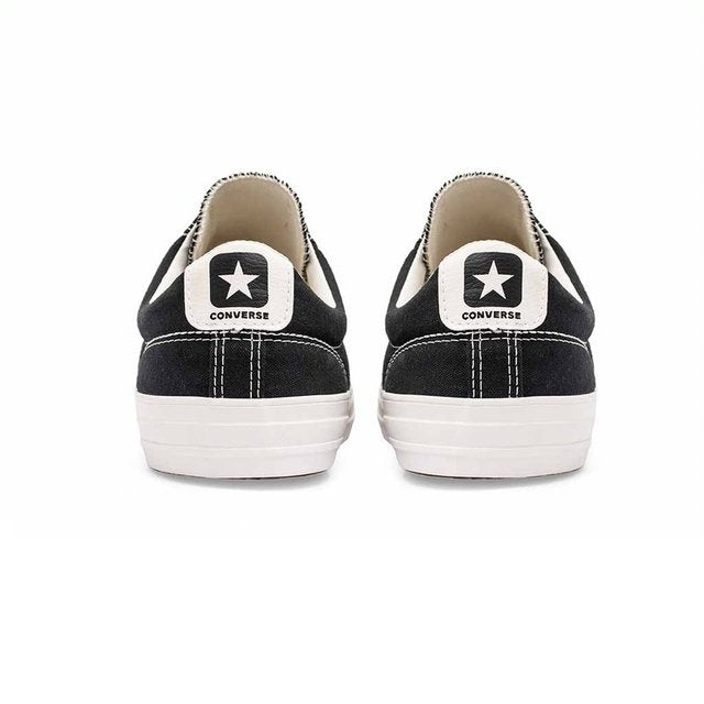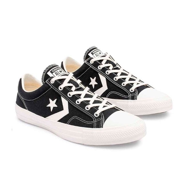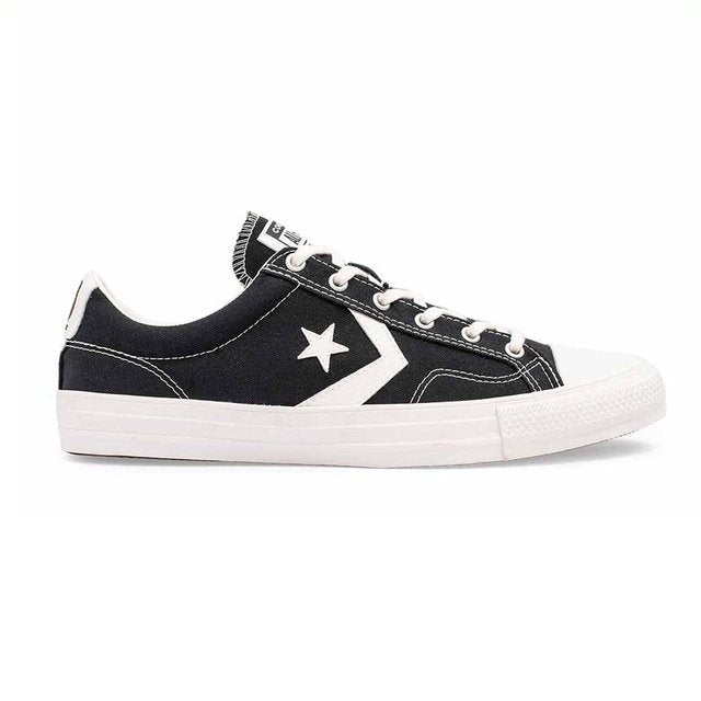 Zapatillas converse estilo urbano negras con goma blanca y logo en lengueta.